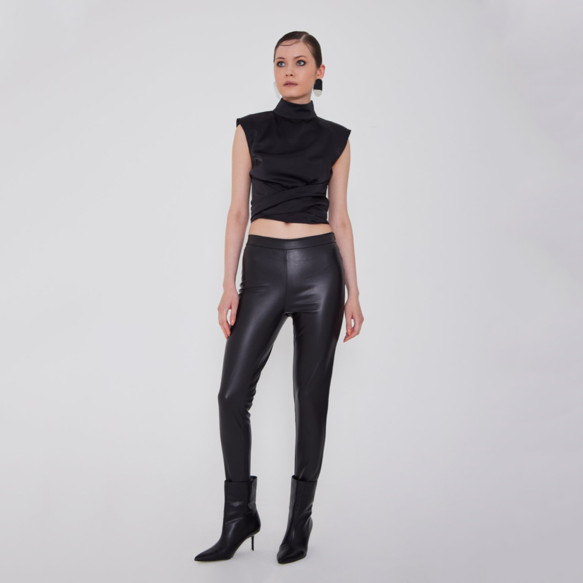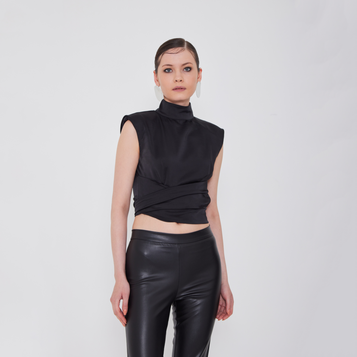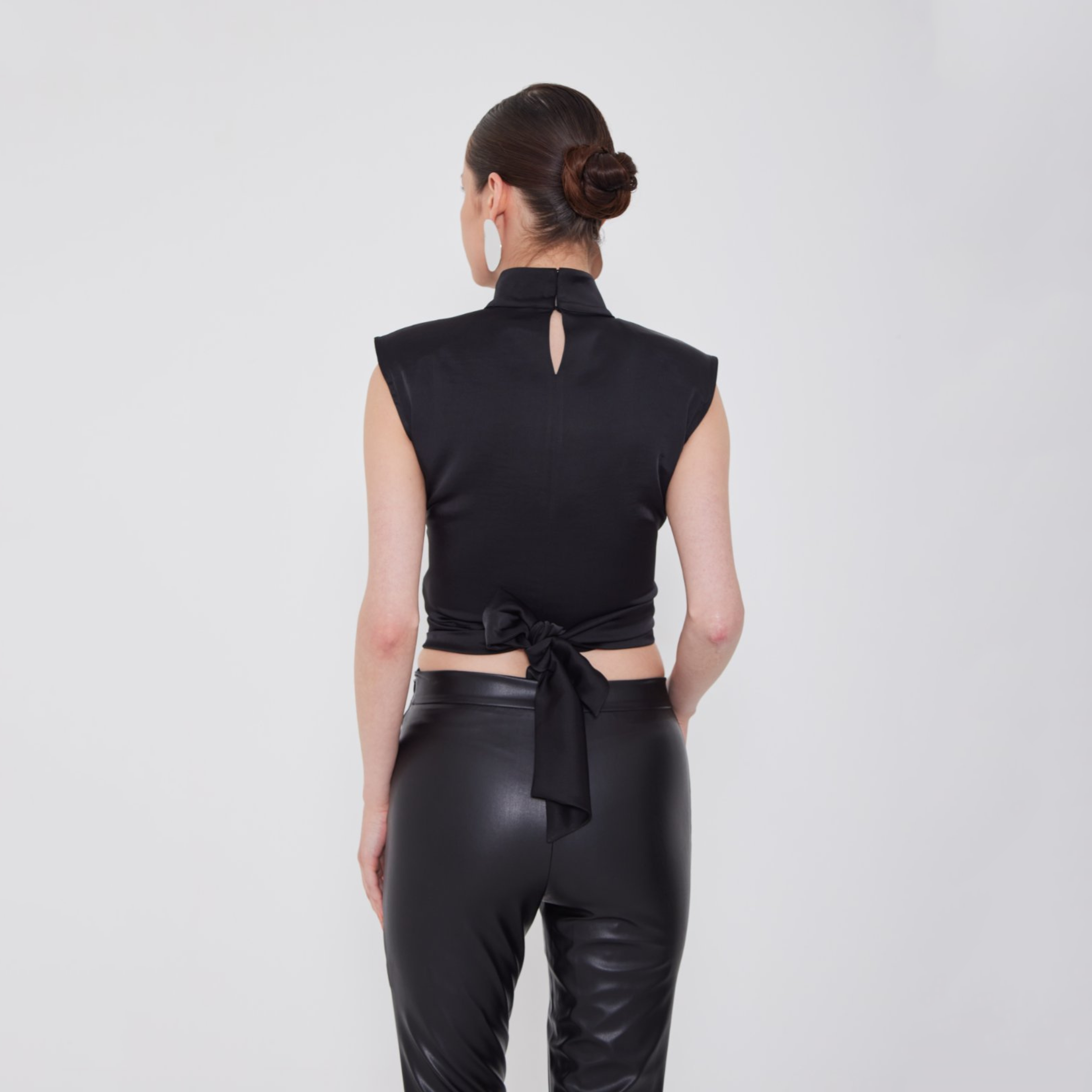 Αμάνικη σατέν μπλούζα με δέσιμο στην μέση
