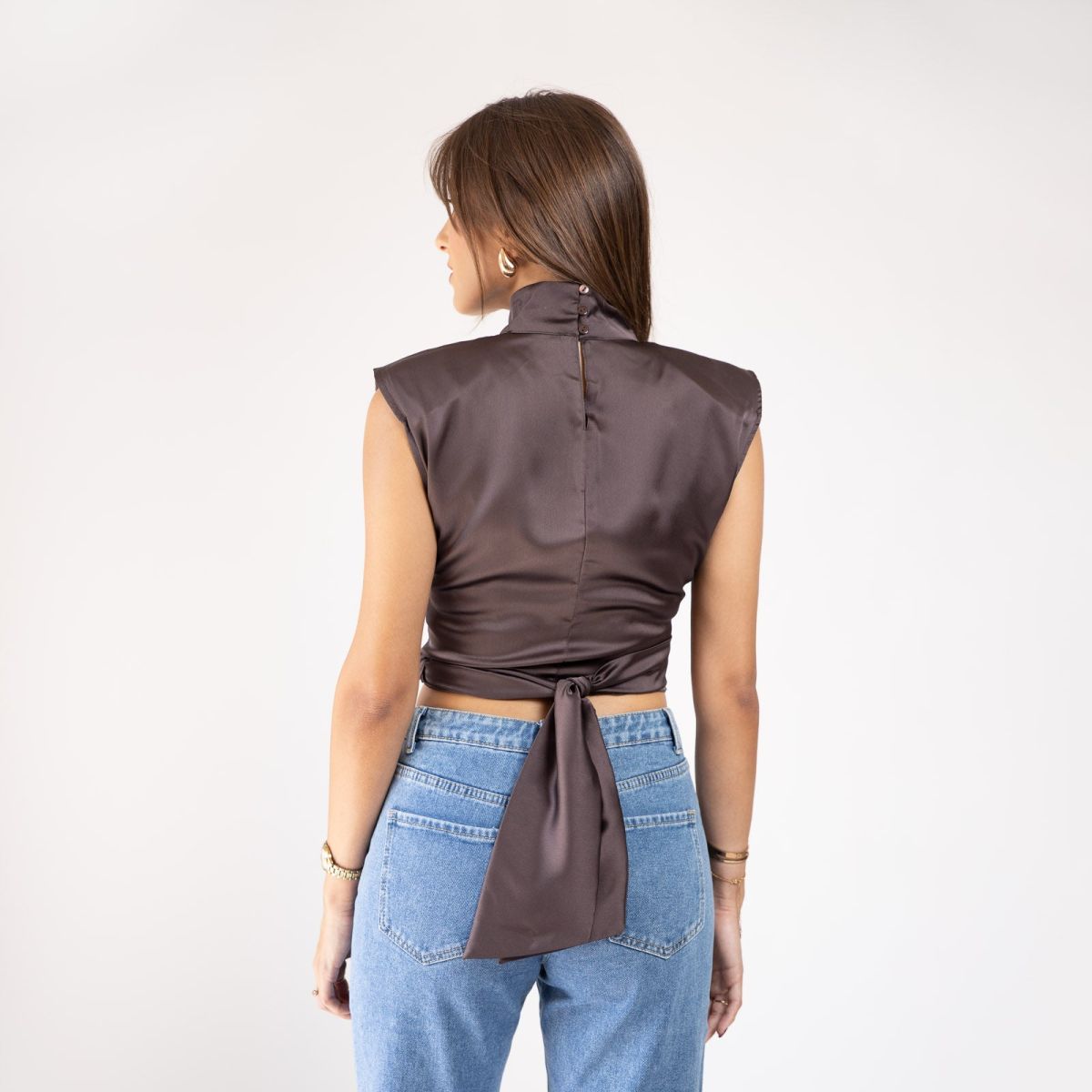Αμάνικη σατέν μπλούζα με δέσιμο στην μέση