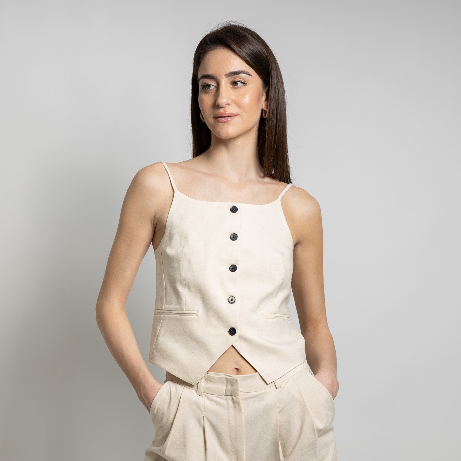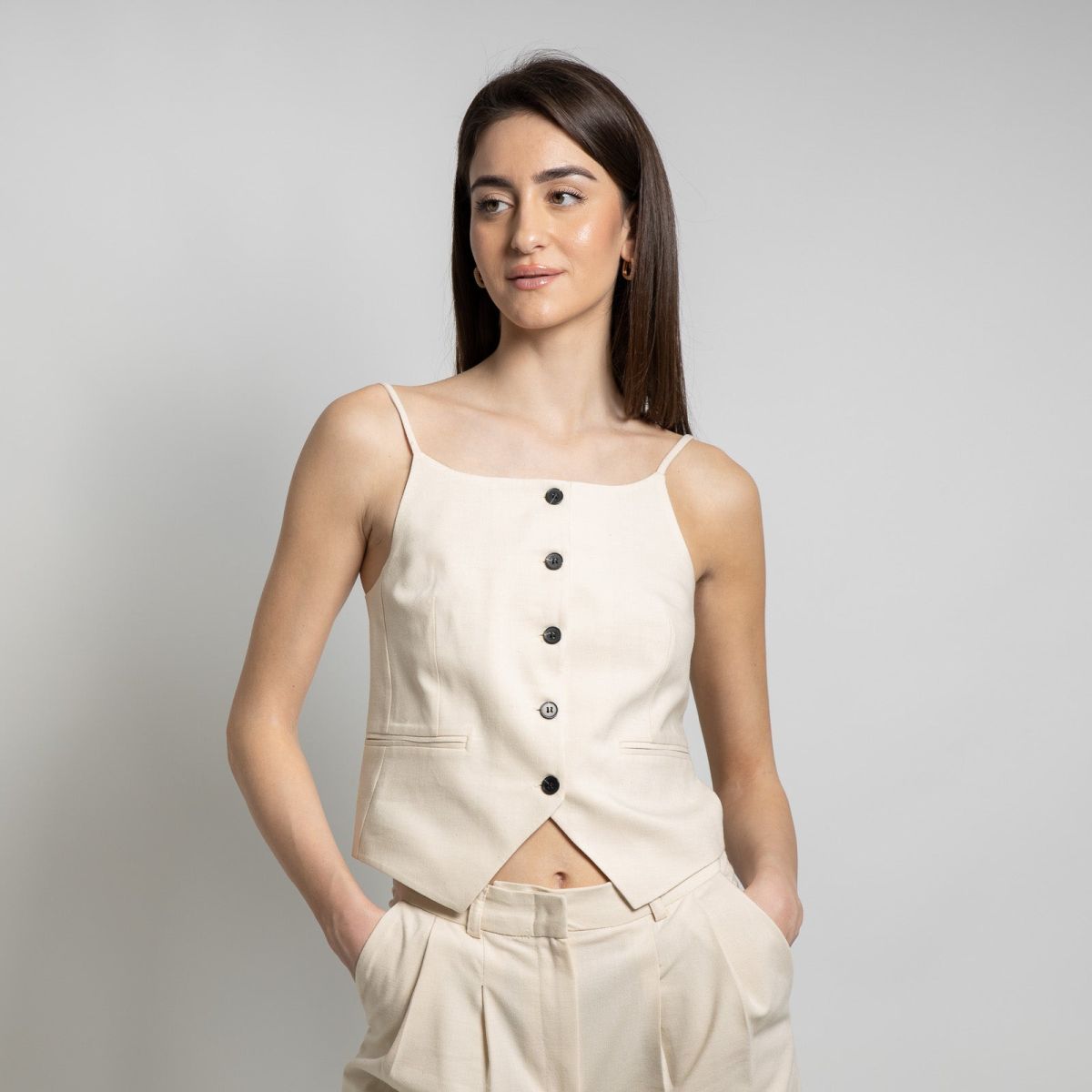Συγκέντρωσε όλα τα βλέμματα πάνω σου με Γιλέκο Με Λεπτό Λουράκι Εκρού εμφάνιση που σε κάνει να ξεχωρίζεις κάθε στιγμή