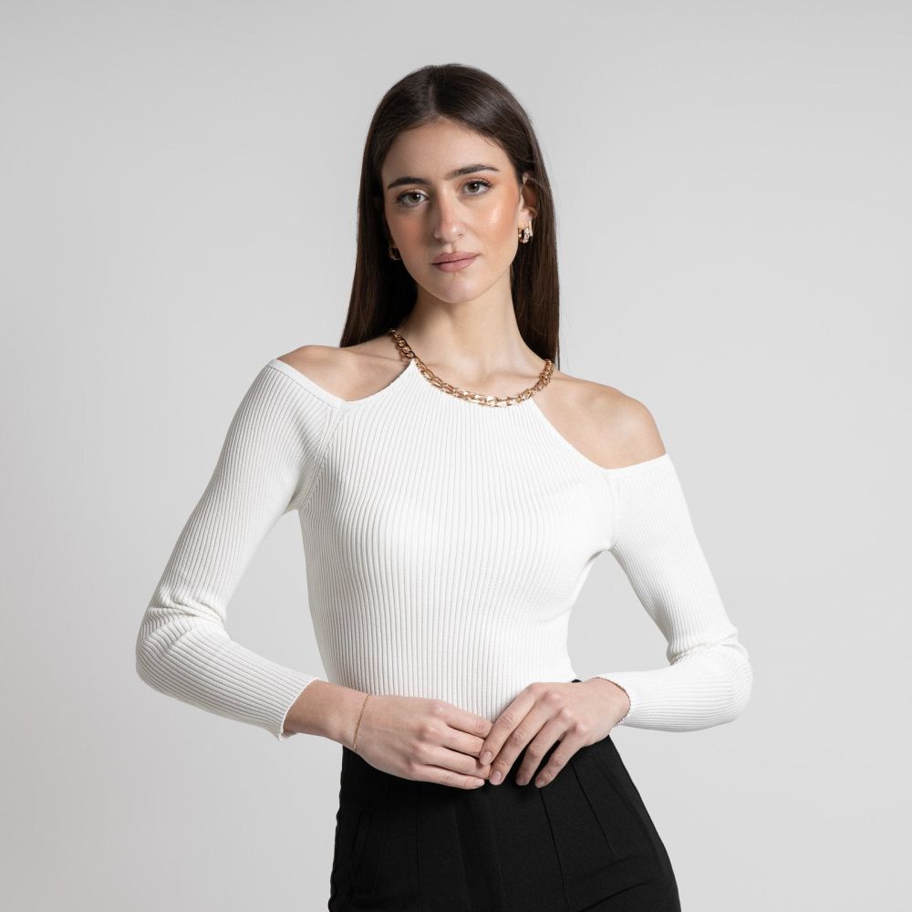 Μπλούζα Πλεκτή Απαλή Υφή Με "V" Εκρού