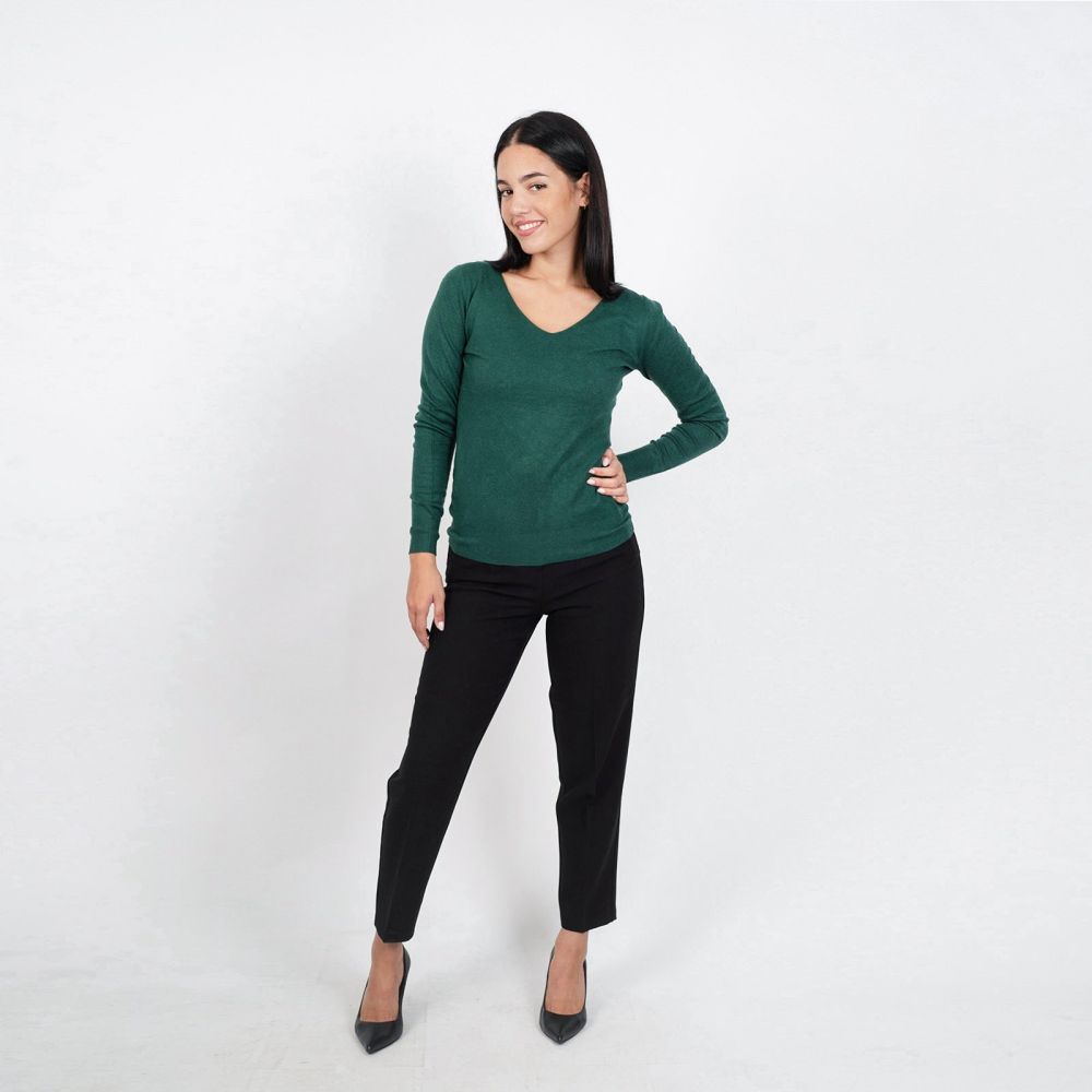 Μπλούζα Πλεκτή Απαλή Υφή Με "V" Πράσινο
