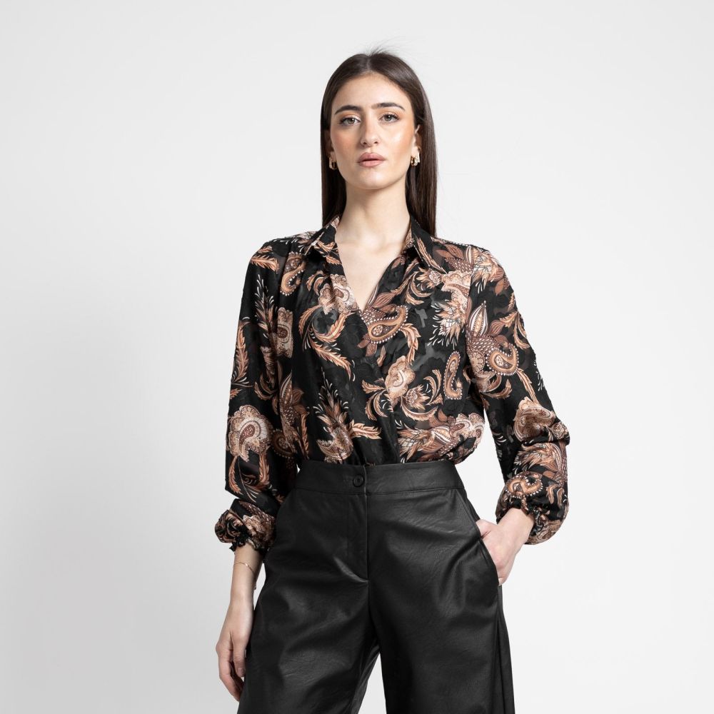 Μπλούζα Εμπριμέ Κρουαζέ Μαύρο