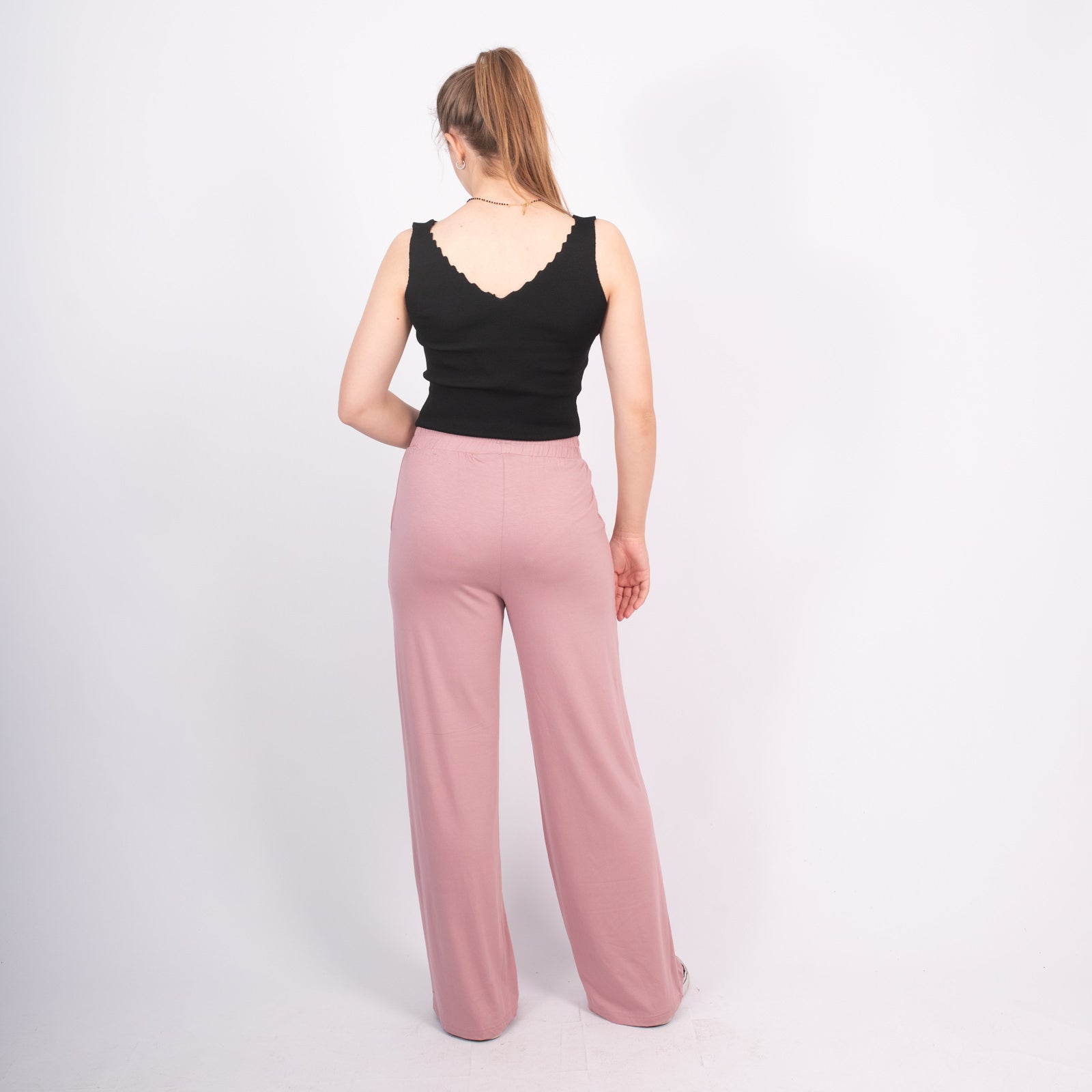 viscose σε άνετη γραμμή. Διαθέτει λάστιχο στη μέση και τσέπες.