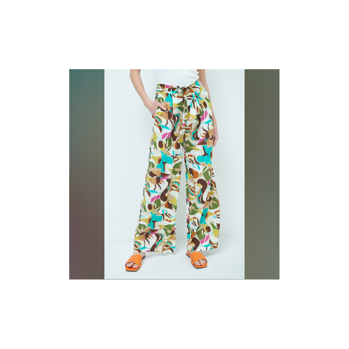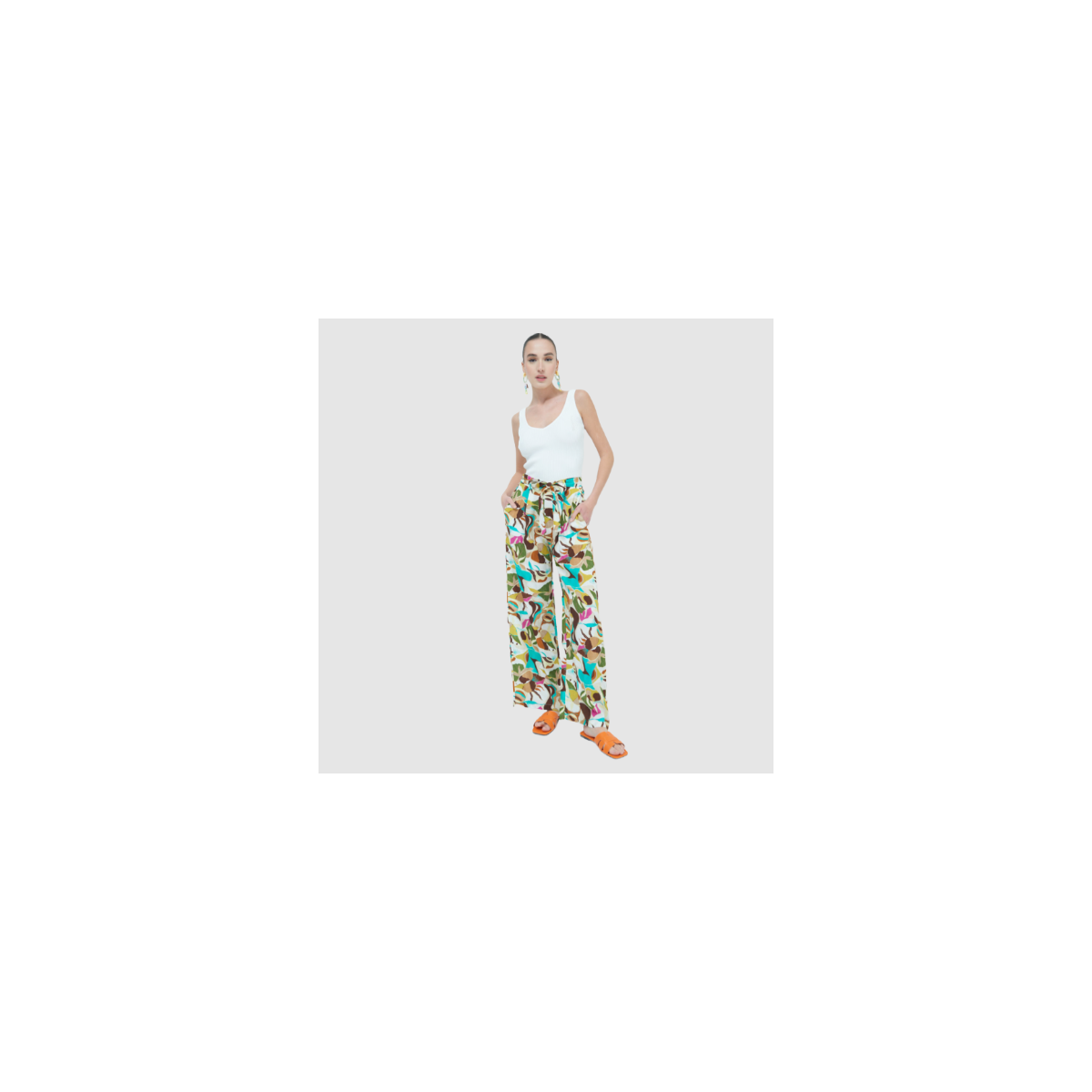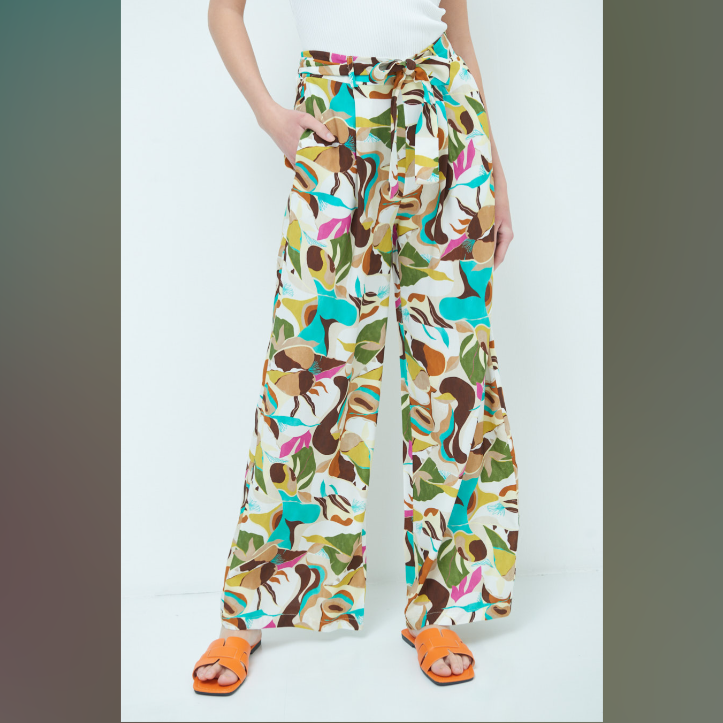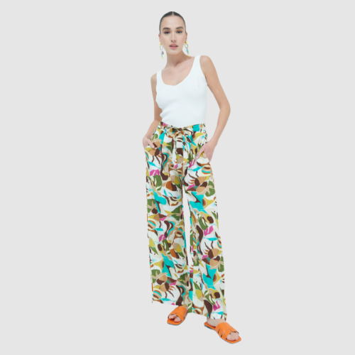 Παντελόνι σε φαρδιά γραμμή και δροσερό ύφασμα. Διαθέτει λάστιχο στη μέση, ζώνη και τσέπες.