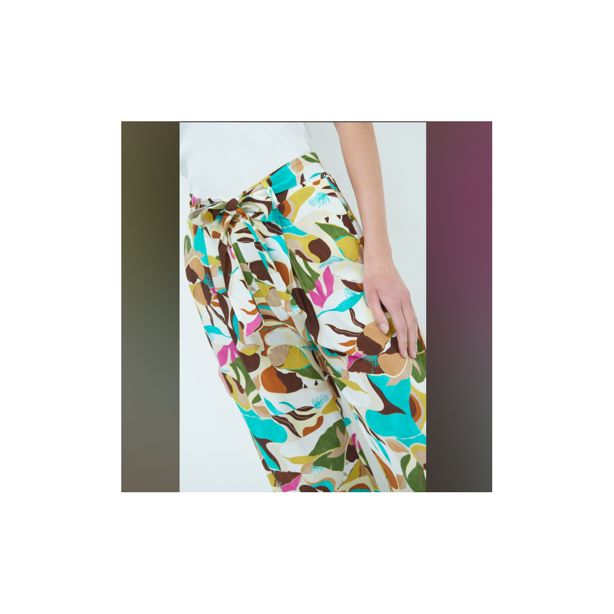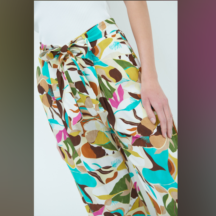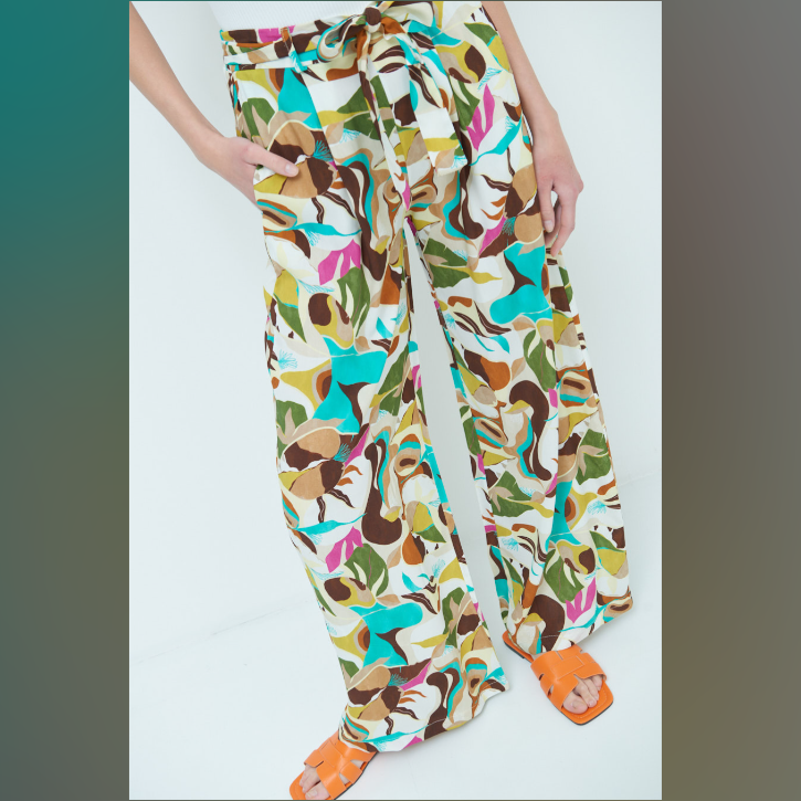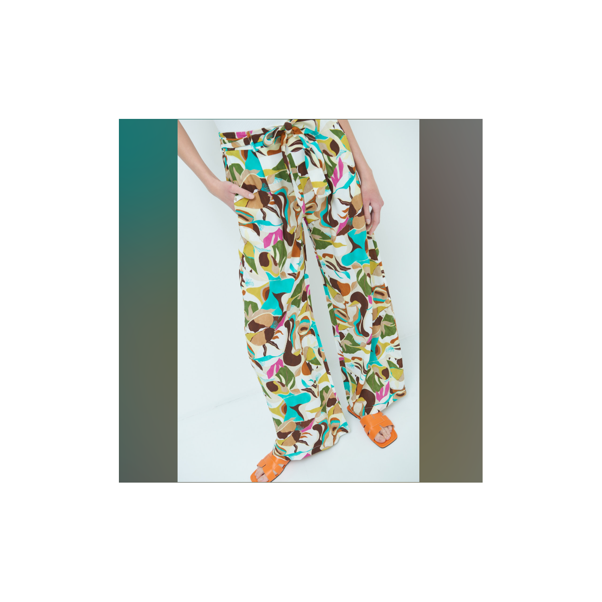 Παντελόνι σε φαρδιά γραμμή και δροσερό ύφασμα. Διαθέτει λάστιχο στη μέση, ζώνη και τσέπες.