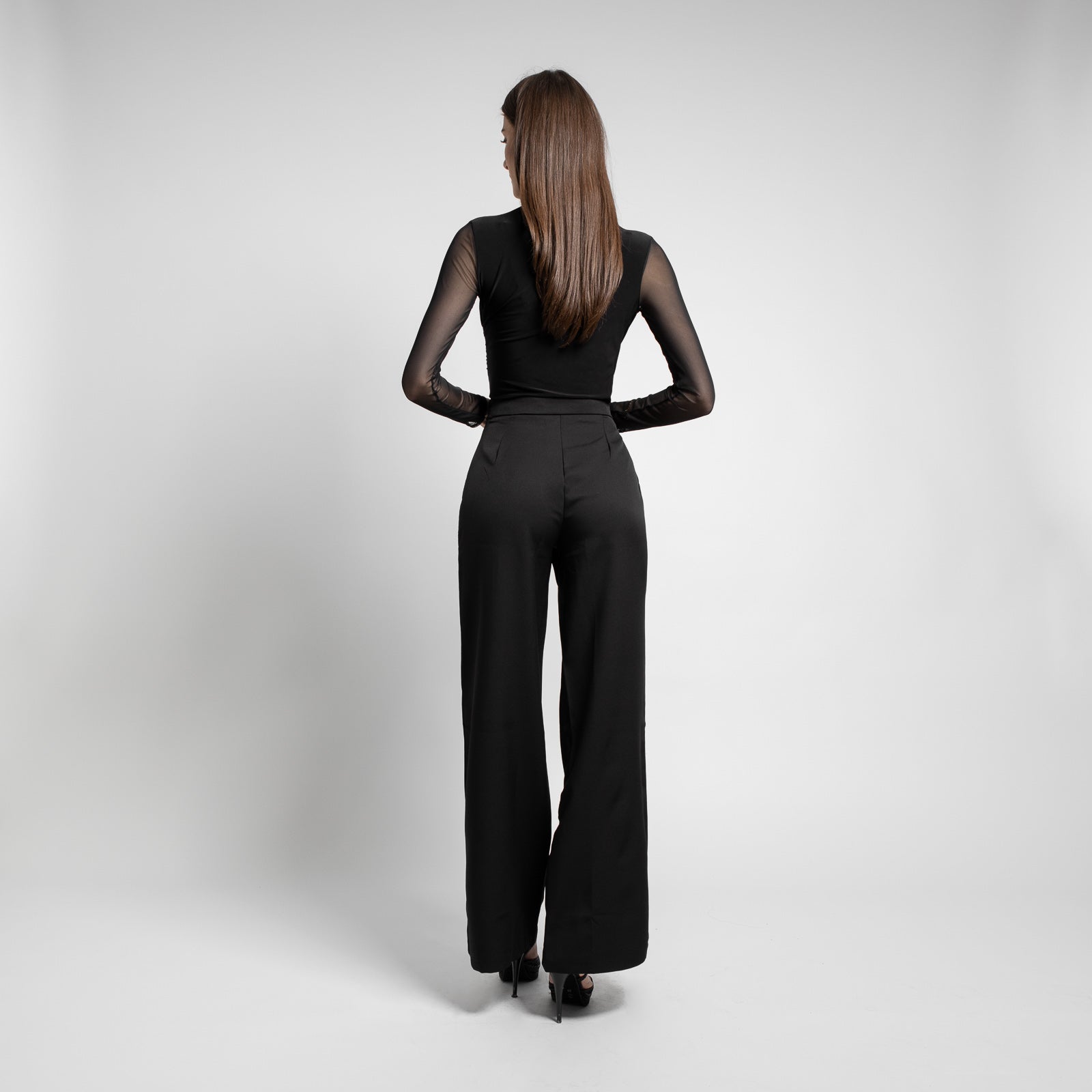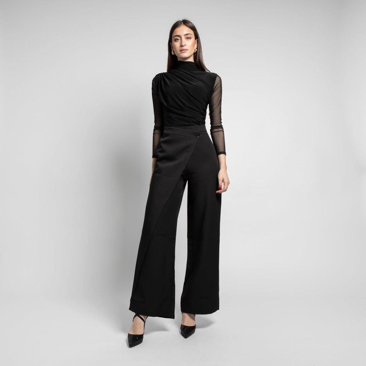 Ψηλόμεσο παντελόνι σε ίσια γραμμή.Εχει διπλό ύφασμα που δένει με κουμπί.Κουμπώνει με φερμουάρ στο πλάι.