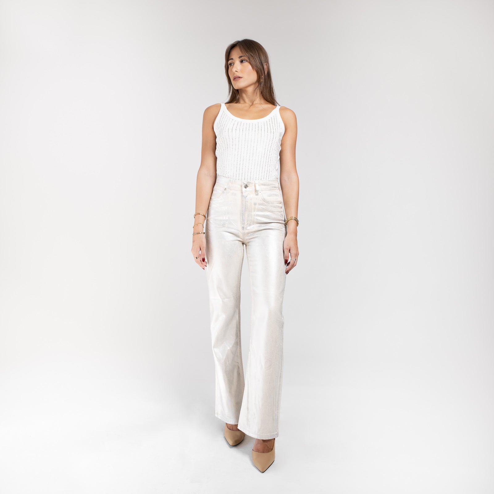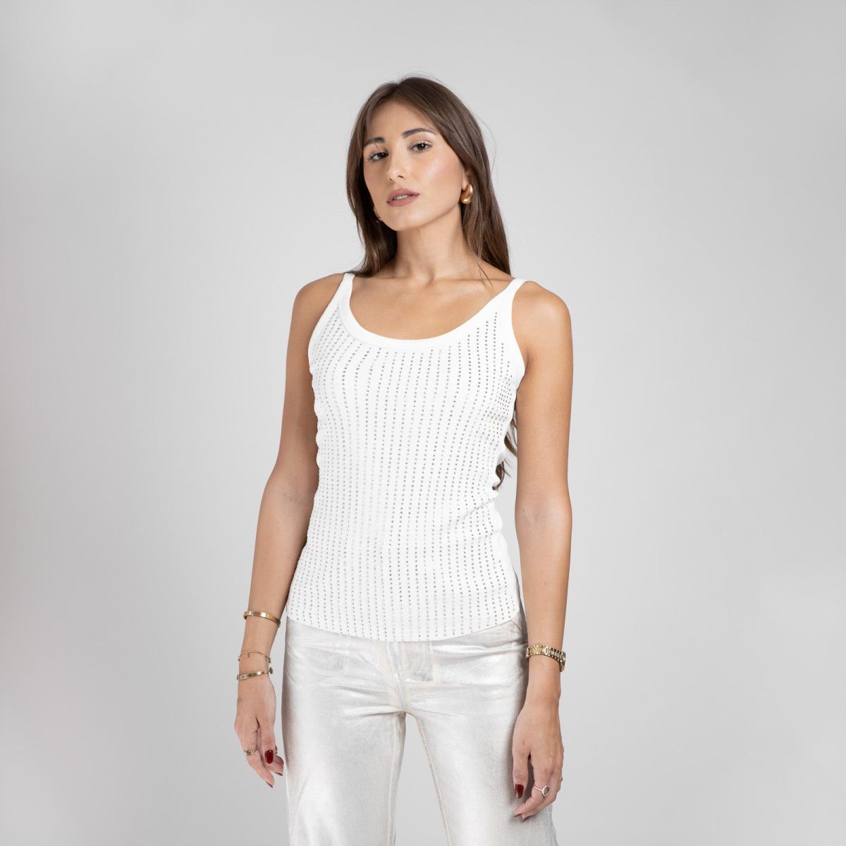 Top Με Λεπτή τιράντα και ασημένιες πούλιες λευκό
