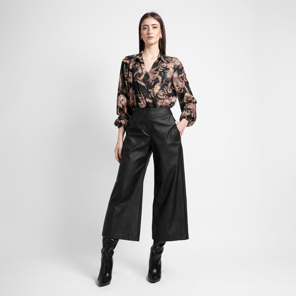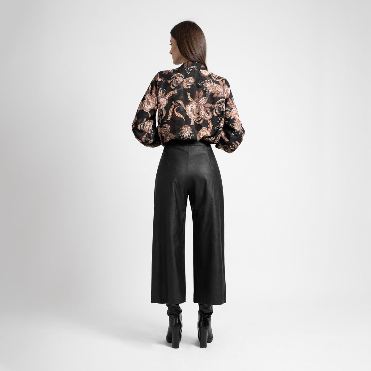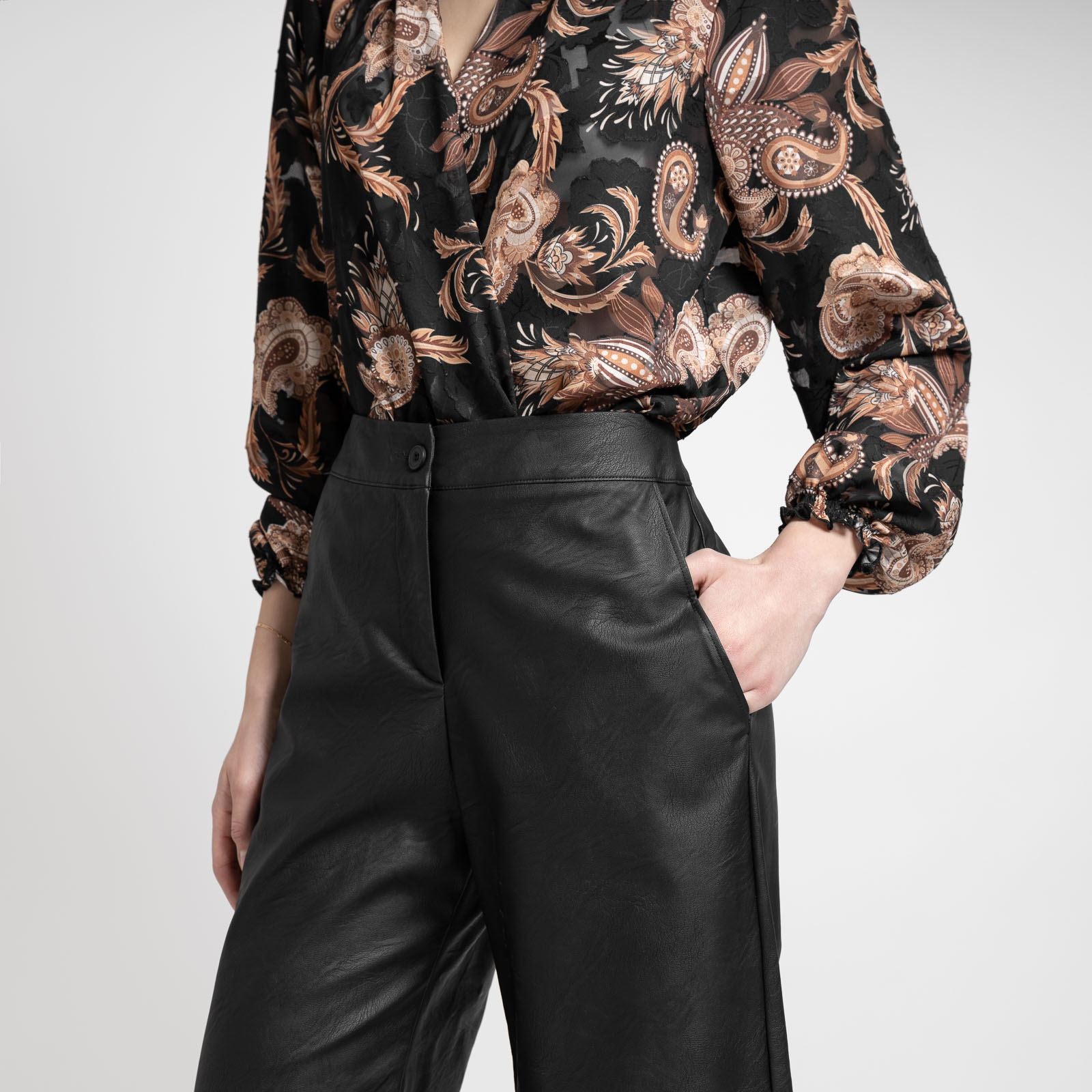 Zip culotte σε ύφασμα δερματίνης με άνετη γραμμή και ιδιαίτερο στυλ. Διαθέτει τσέπες και φερμουάρ μπροστά. Η εσωτερική πλευρά της δερματίνης είναι 100% βισκόζ (φυσική) για να αναπνέει το δέρμα. 100% ελληνικής παραγωγής
