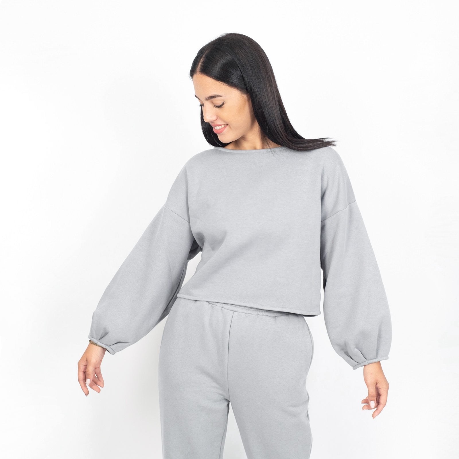 Συγκέντρωσε όλα τα βλέμματα πάνω σου με Φούτερ Κοντό Με Πιέτες Στο Μανίκι Γκρι εμφάνιση που σε κάνει να ξεχωρίζεις κάθε στιγμή
