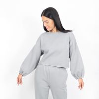 Φούτερ Κοντό Με Πιέτες Στο Μανίκι Γκρι