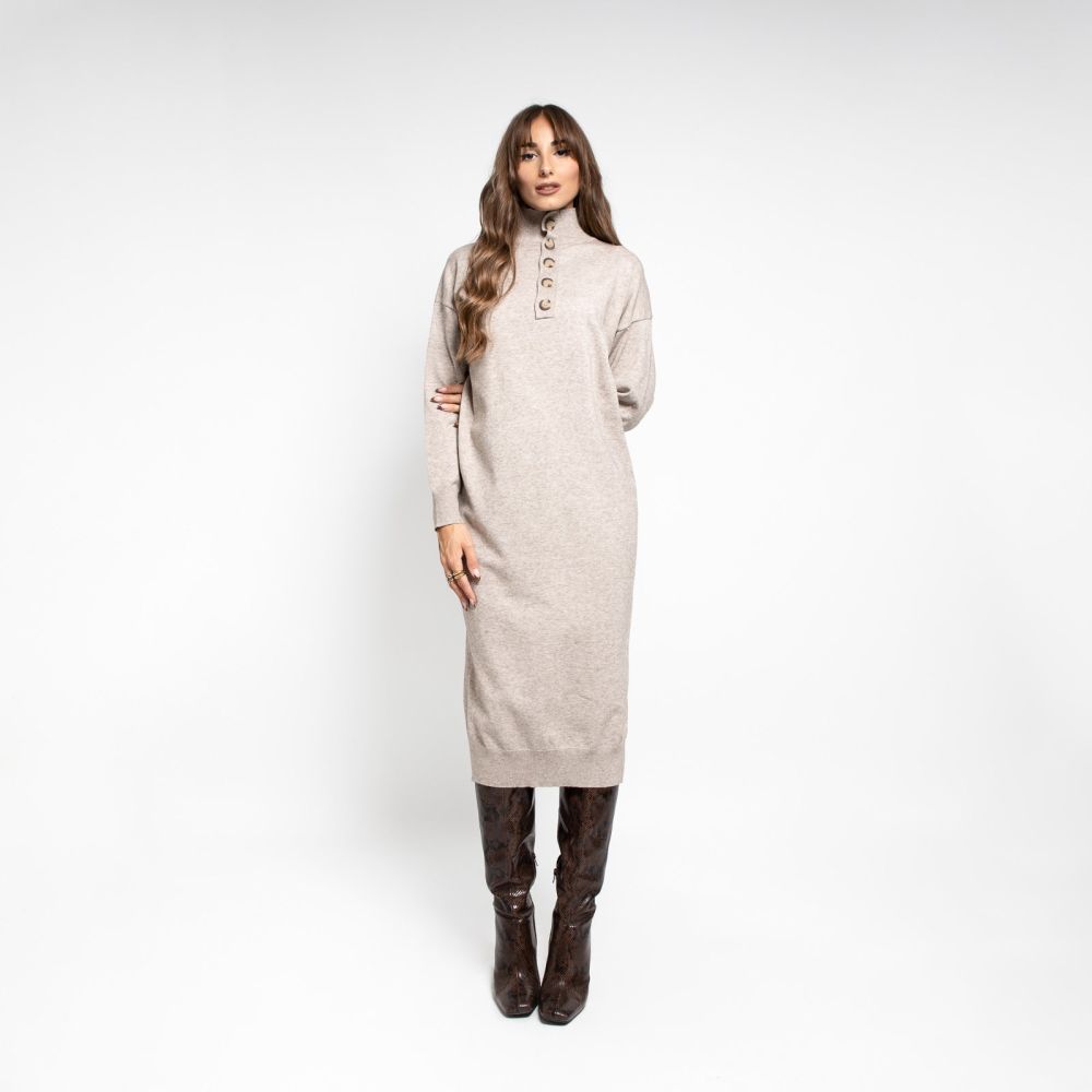 Midi Πλεκτό Φόρεμα Oversized Μπεζ