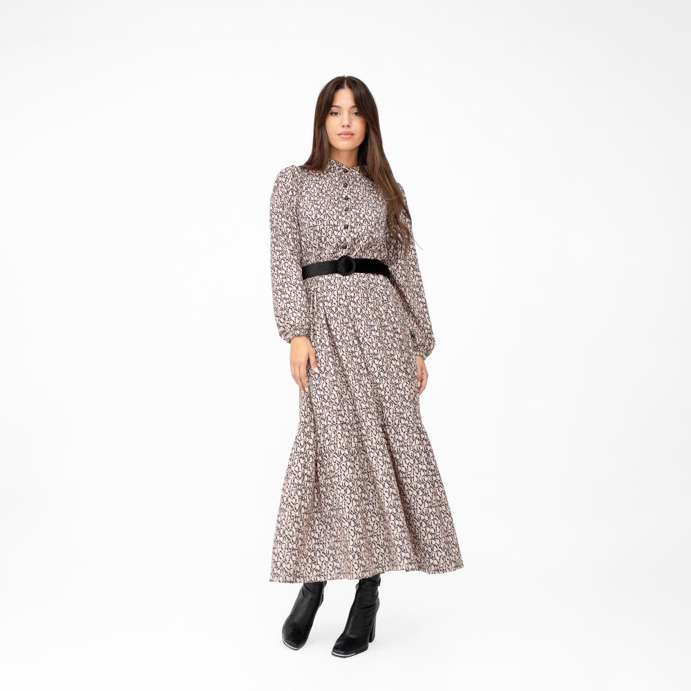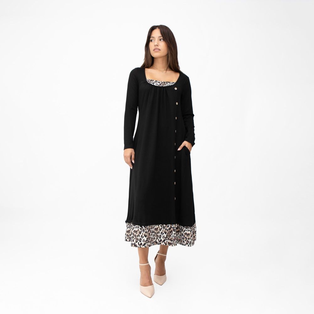 Μακρύ Φόρεμα Animal Print Μαύρο