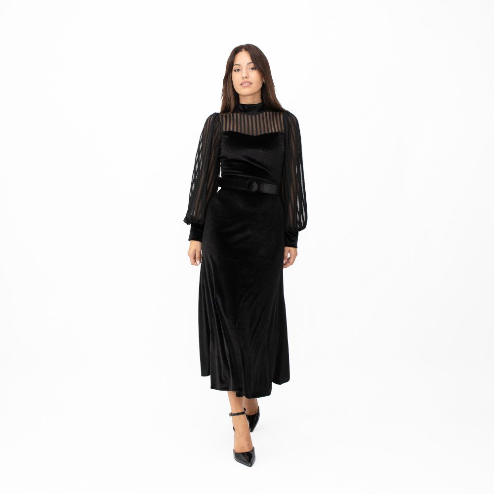 Maxi Φόρεμα Μακρυμάνικο Με Πούλιες Μαύρο