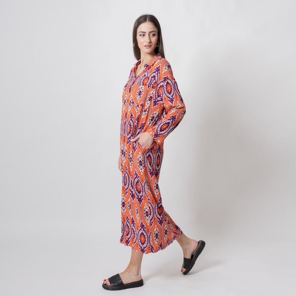 Φόρεμα Μακρύ Σεμιζιέ Με Τσέπες Πορτοκαλί