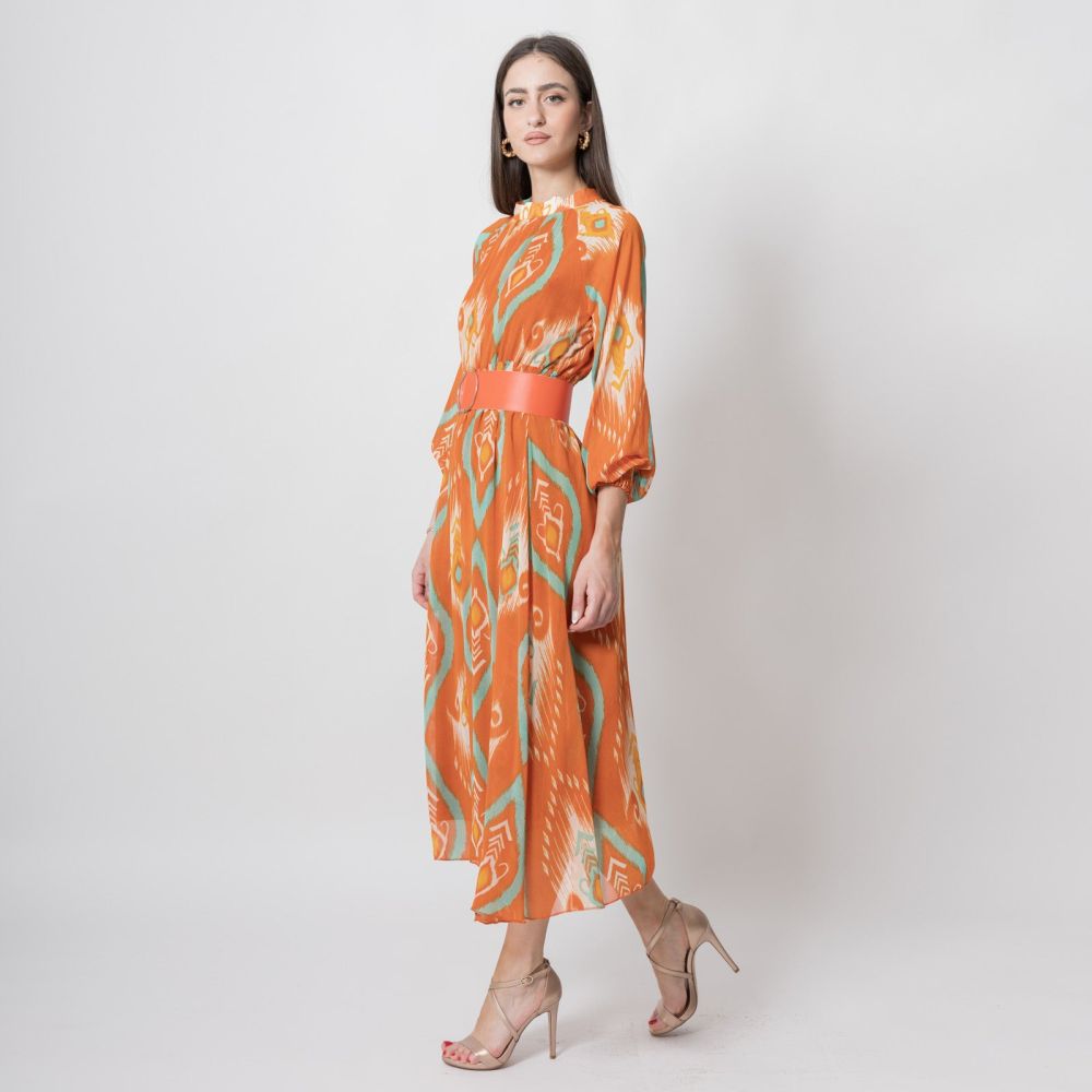 Φόρεμα Με Κλειστή Λαιμόκοψη Μακρυμάνικο Πορτοκαλί