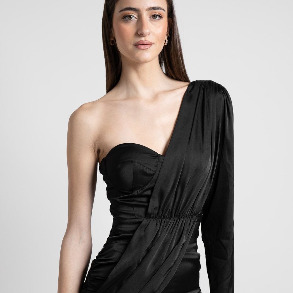 Φόρεμα Μίνι Με Εναν Ωμο Μαύρο