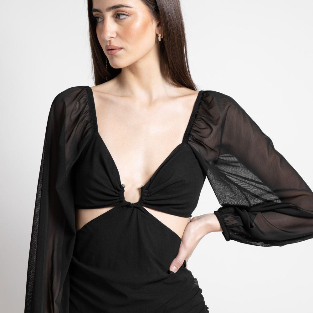 Φόρεμα Μίνι Με Λεπτομέρεια Στο Στήθος Μαύρο