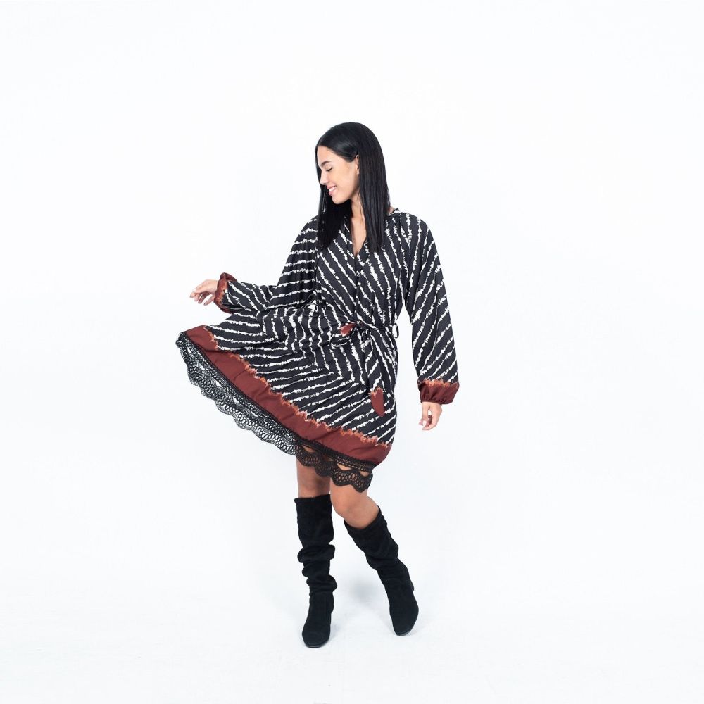 Φόρεμα Ζακάρ Mini Με Ζώνη Καφέ