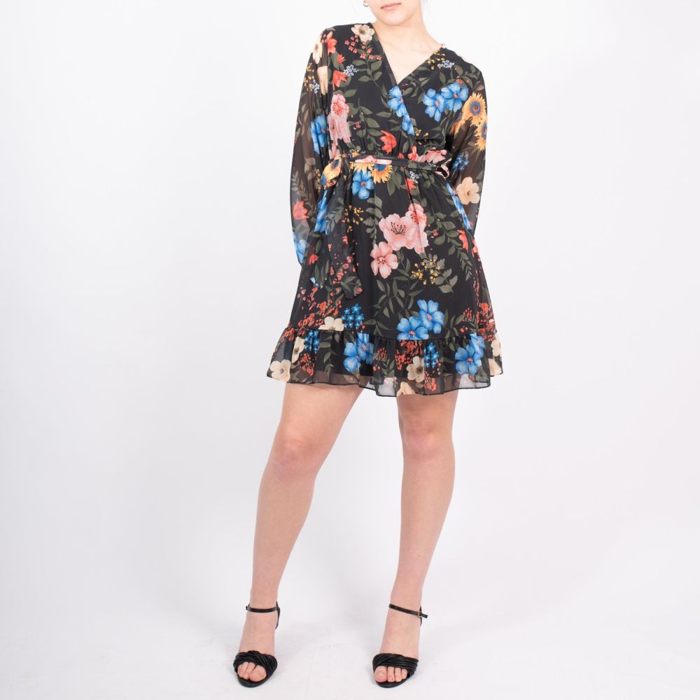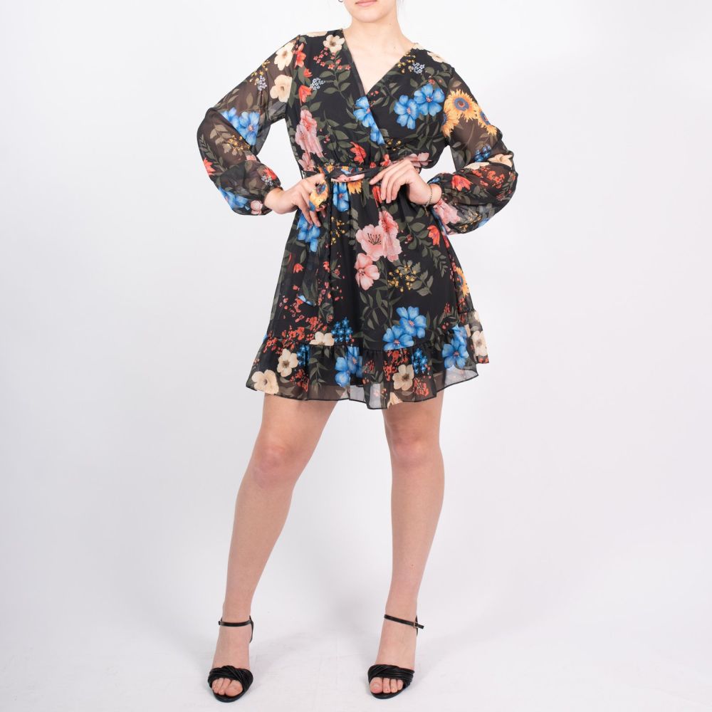 Μίνι Φόρεμα Κρουαζέ Μαύρο Με Λουλούδια