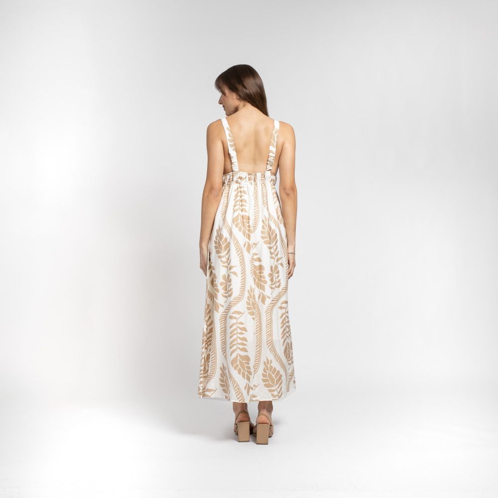 Φόρεμα Maxi Mε Τύπωμα Φύλλων Μπεζ