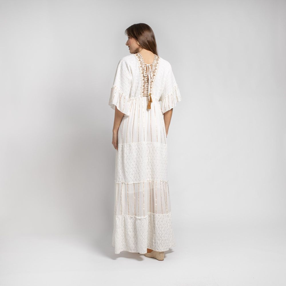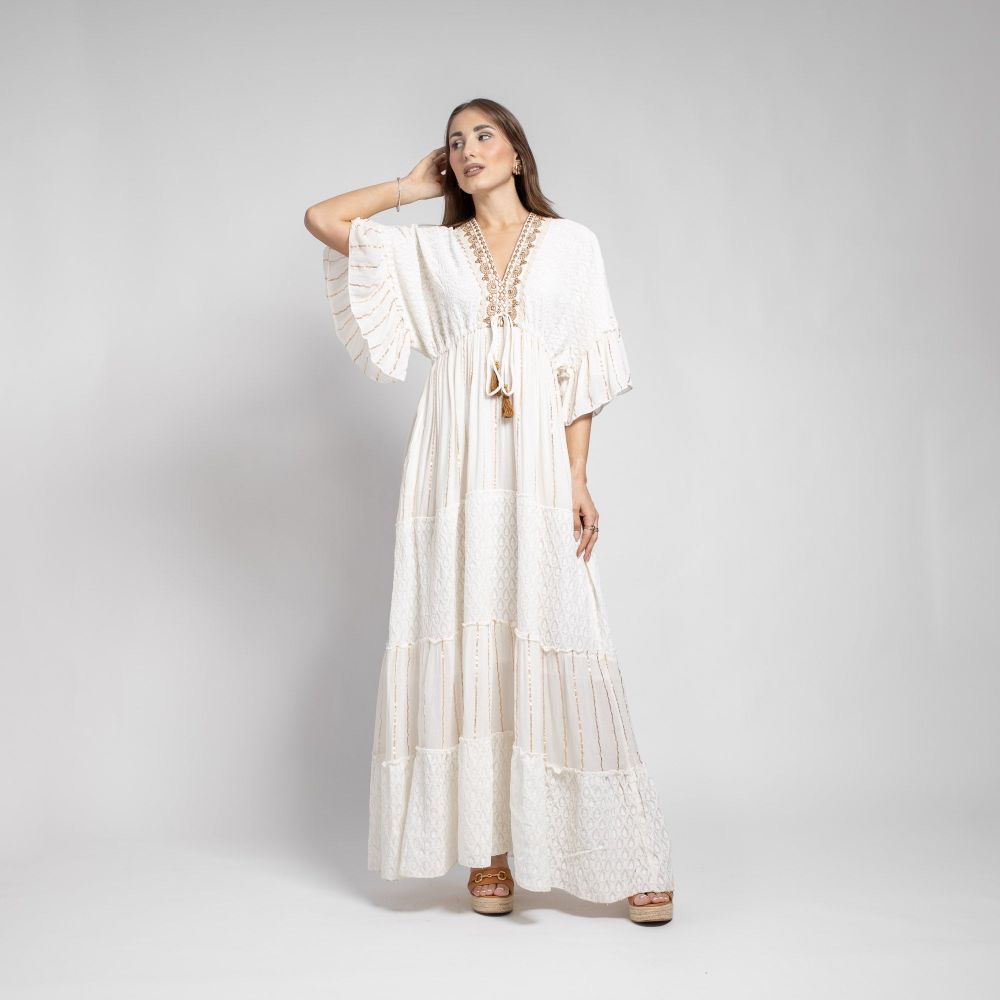 Boho Maxi Φόρεμα Με Λαιμόκοψη V Εκρού