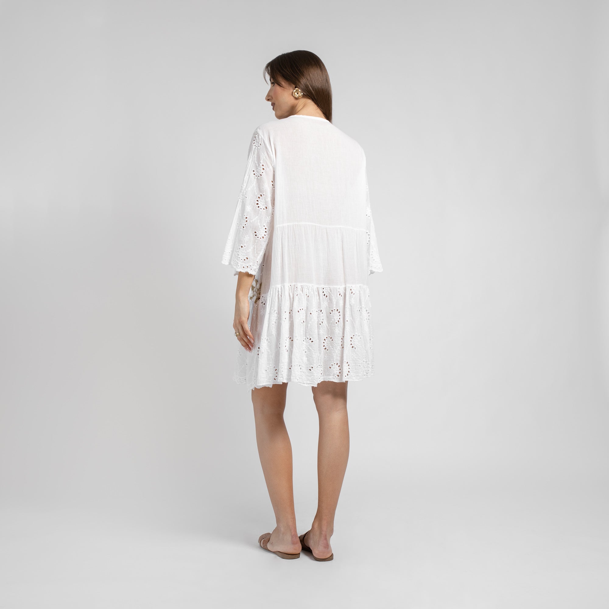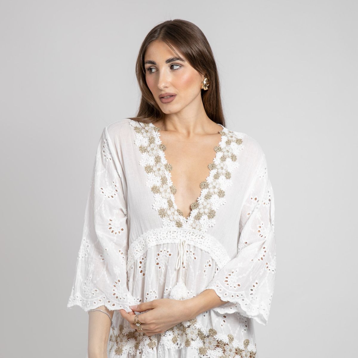 Έχει φαρδιά μανίκια και κιπούρ λεπτομέρειες που χαρίζουν αέρινη, καλοκαιρινή αίσθηση.
