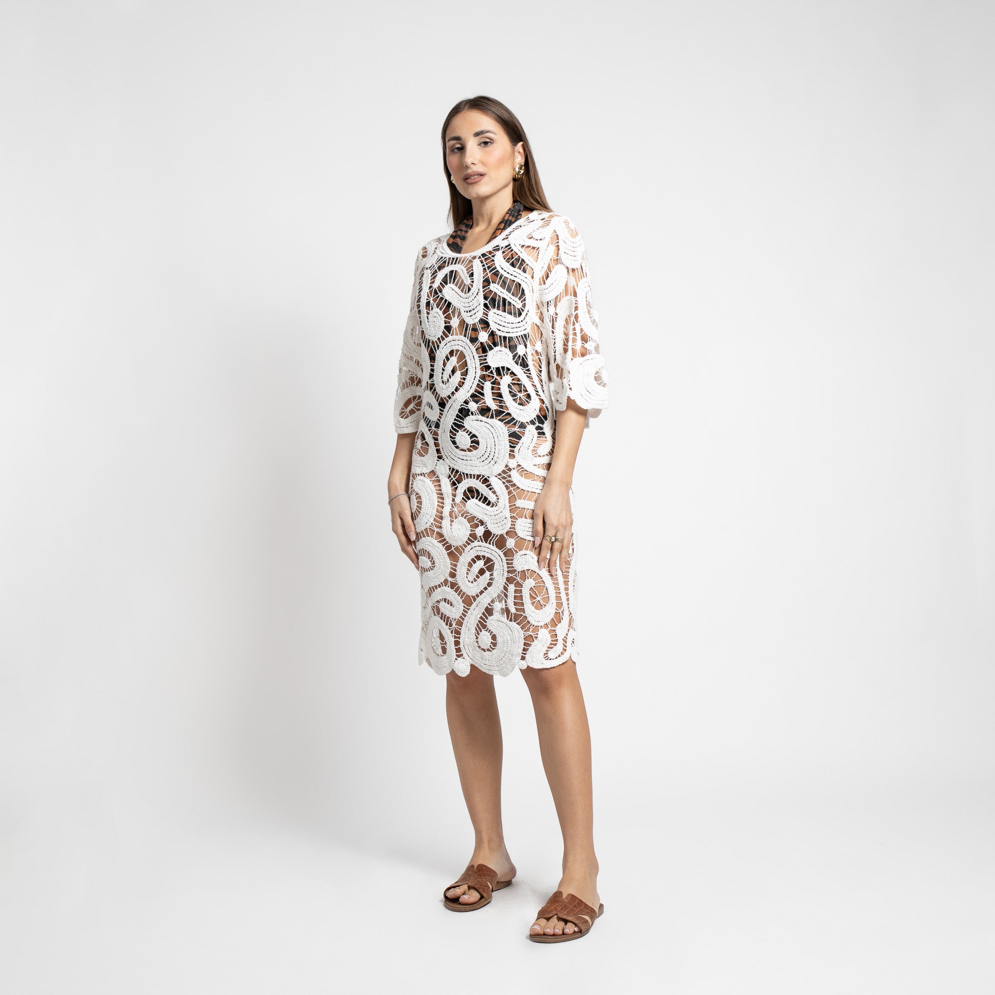 Απογείωσε τις καλοκαιρινές σου εμφανίσεις με το Διχτυωτό Midi Φόρεμα Λευκό!