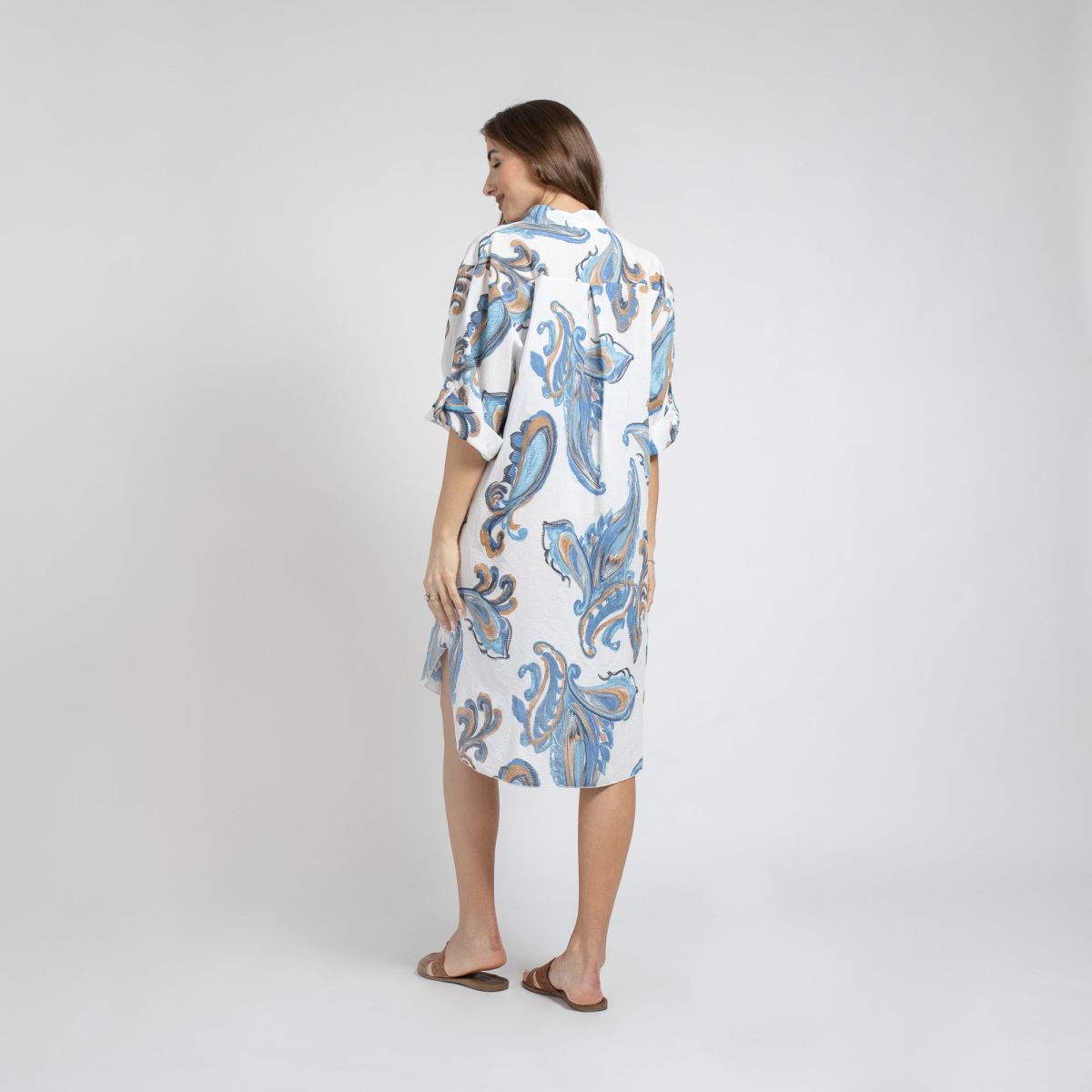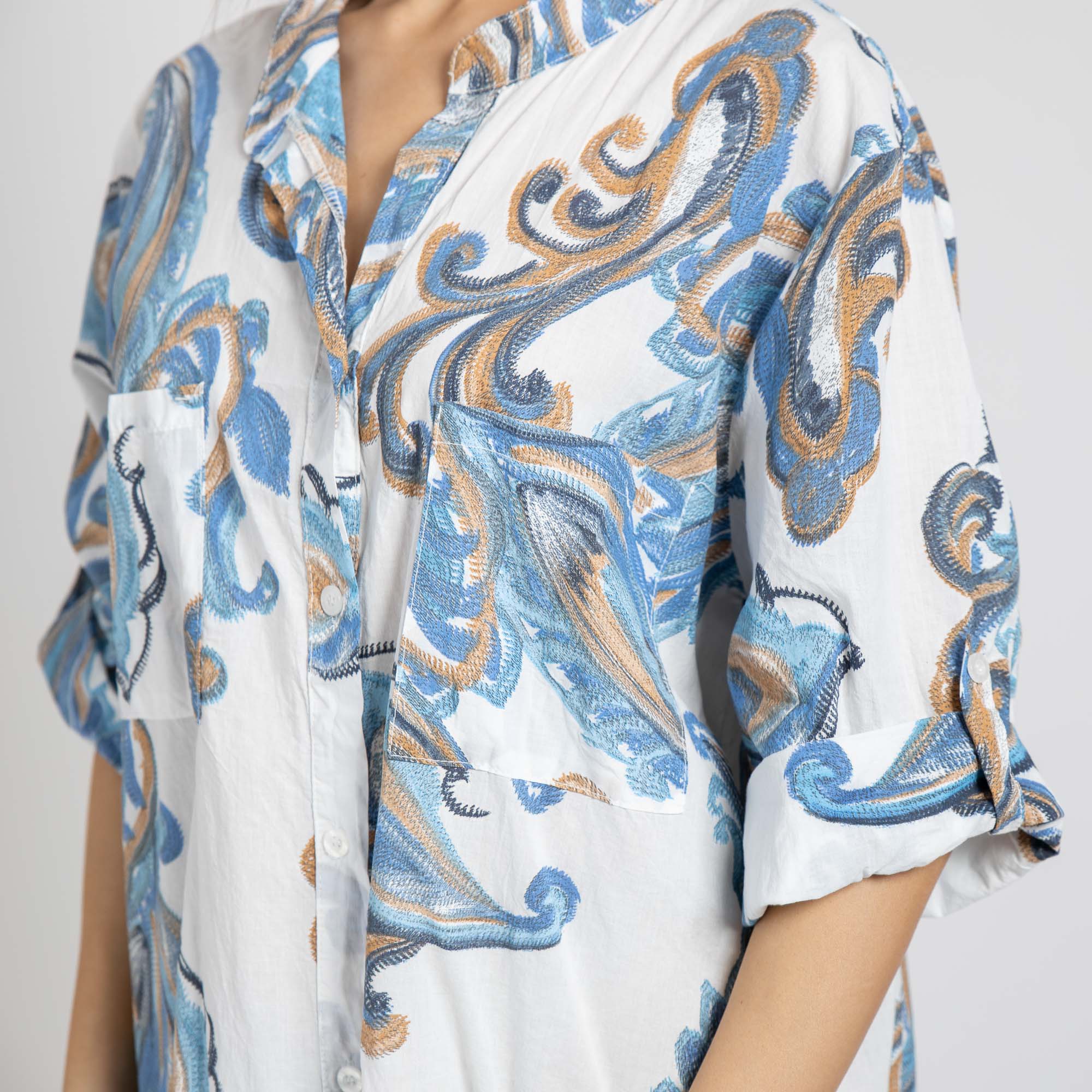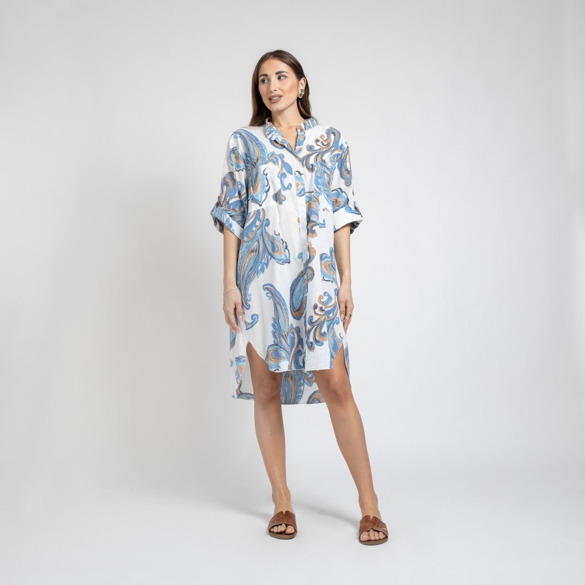 Το Φόρεμα Chemisier με Μανίκι Λευκό της συλλογής Fashioncore συνδυάζει την αίσθηση ελευθερίας με την urban αισθητική. Με εντυπωσιακό αφηρημένο μπαρόκ print και άνετη, oversized εφαρμογή, είναι το τέλειο κομμάτι για καθημερινές εμφανίσεις που τραβούν τα βλέμματα — διακριτικά, αλλά με χαρακτήρα.