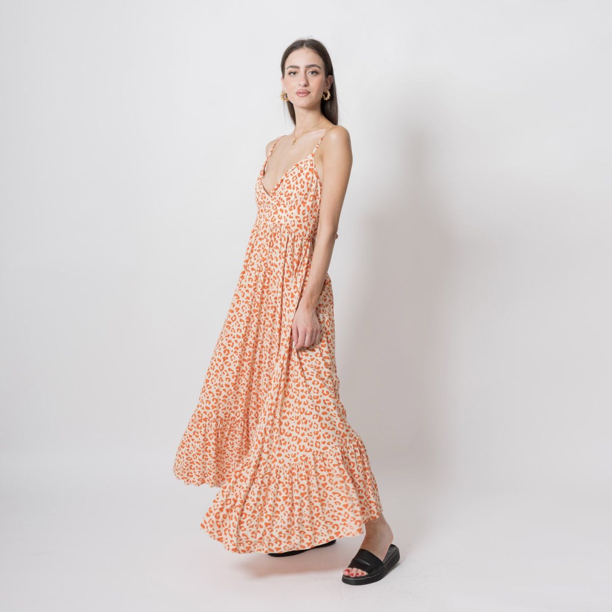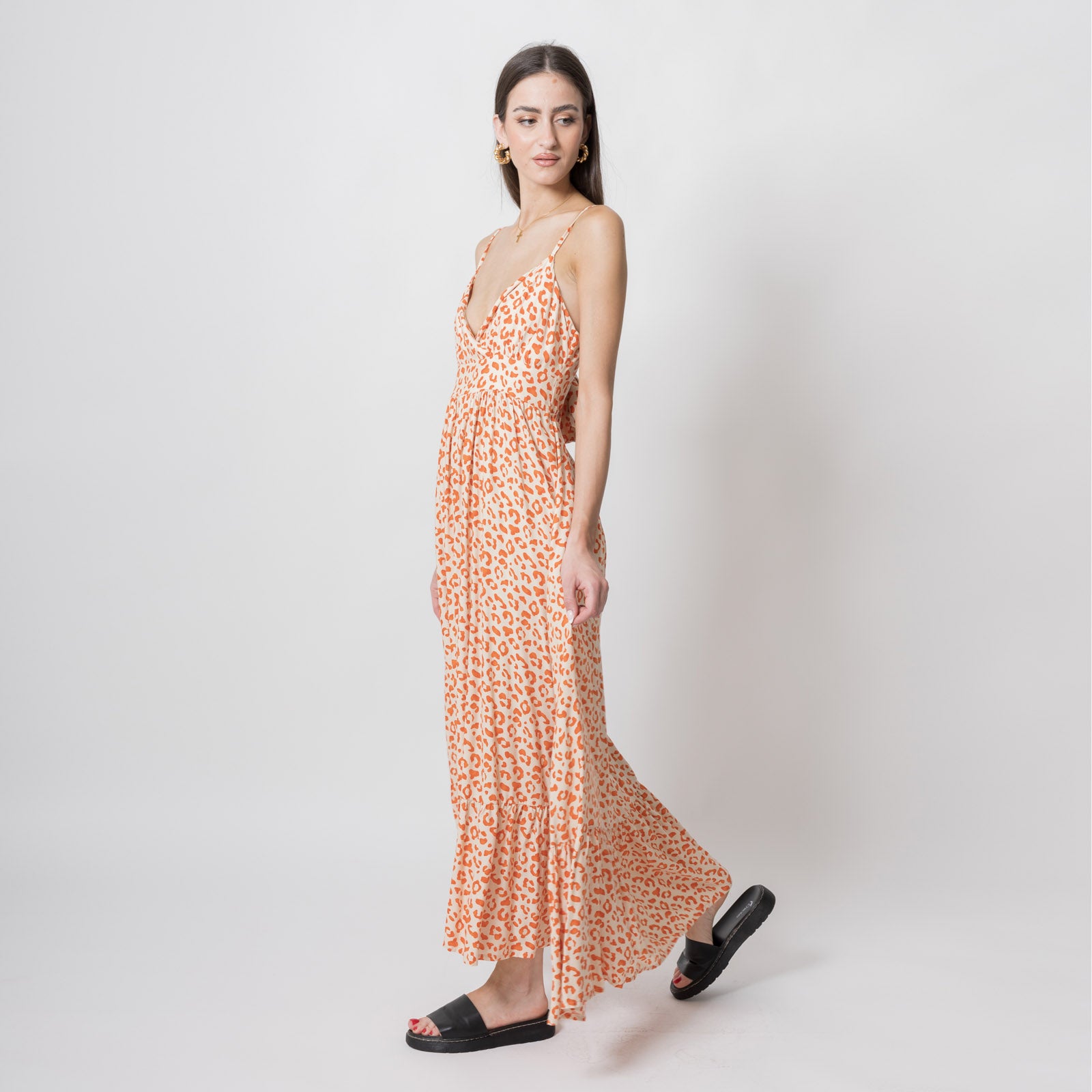 Φόρεμα μακρύ με σχέδιο στην πλάτη και τιράντες.