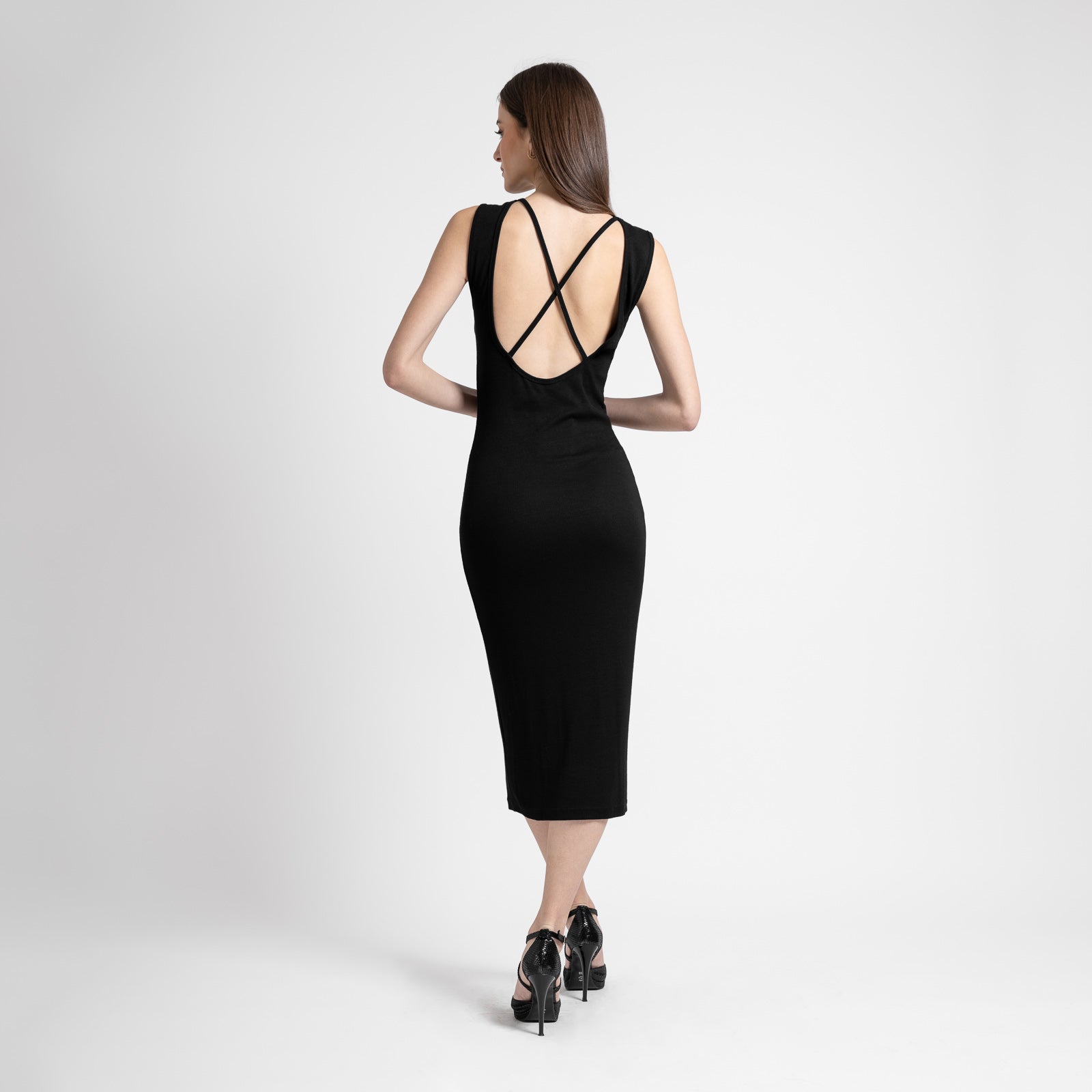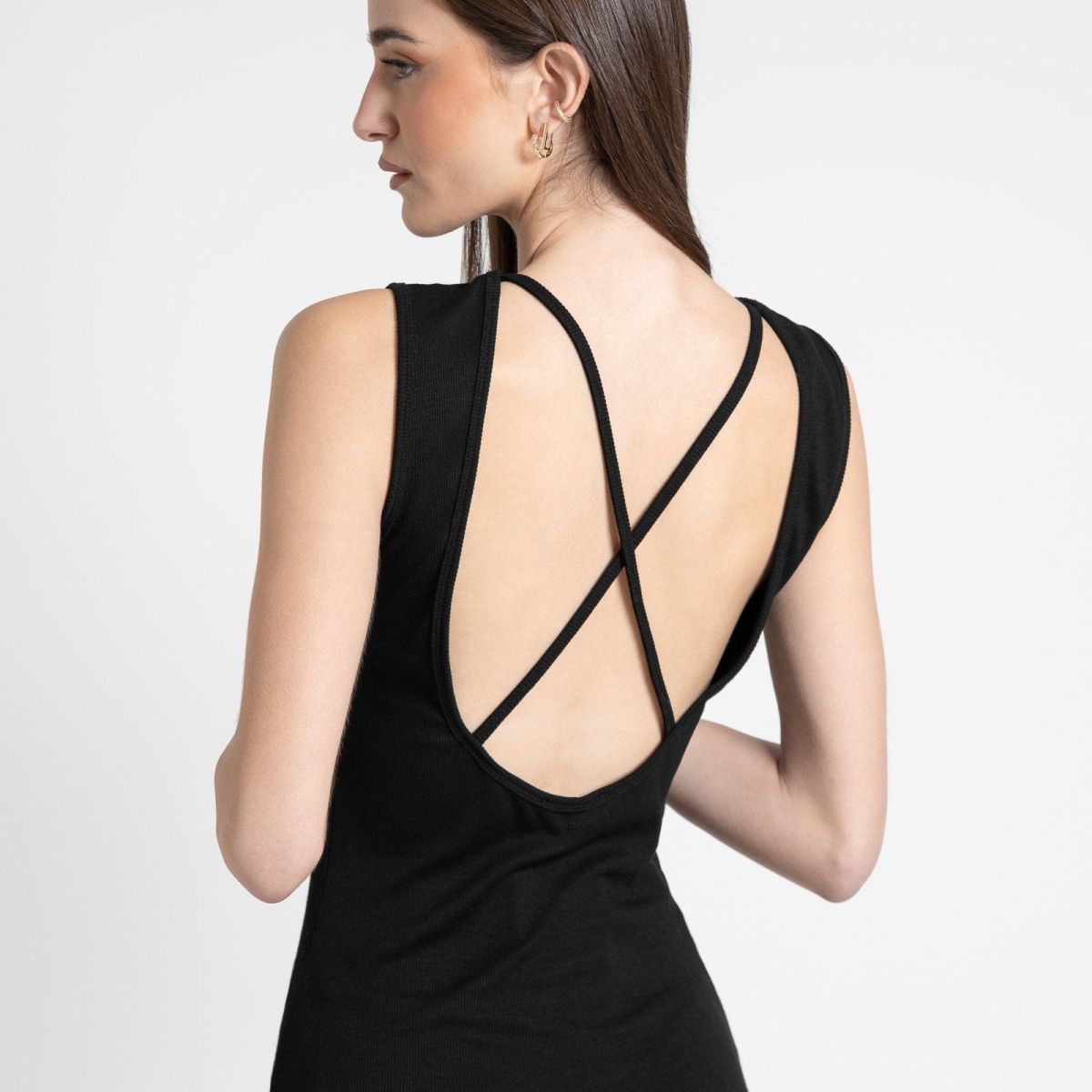 "Αναδείξτε τη θηλυκότητά σας με το must-have φόρεμα του καλοκαιριού – το μαύρο rib midi με ανοιχτή πλάτη που αγκαλιάζει το σώμα και κλέβει τις εντυπώσεις σε κάθε σας εμφάνιση!"