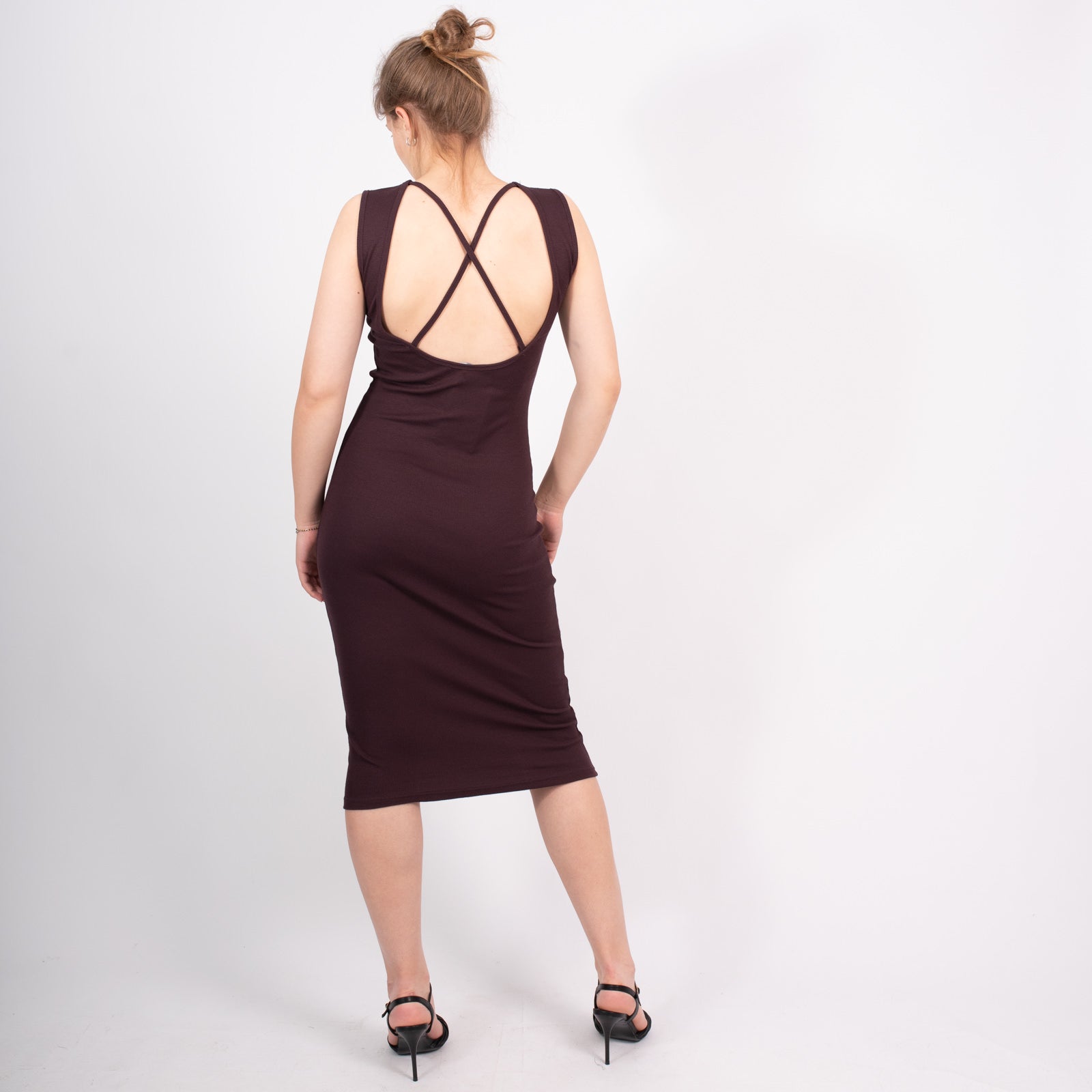 Το Midi Rip Φόρεμα με Ανοιχτή Πλάτη Μπορντό είναι το απόλυτο basic-with-a-twist item που δεν πρέπει να λείπει από τη ντουλάπα σου. Είναι ελαστικό, αγκαλιάζει διακριτικά το σώμα και προσφέρει ελευθερία κινήσεων.Η πλάτη του με σχέδιο “χιαστή” προσθέτει ένα εντυπωσιακό στοιχείο που κάνει το φόρεμα να ξεχωρίζει, ενώ η rib υφή και η minimal γραμμή το καθιστούν ιδανικό για καθημερινές αλλά και πιο ξεχωριστές εμφανίσεις.Συνδύασέ το με sneakers για cool πρωινό look ή με πέδιλα και κοσμήματα για πιο βραδινή εμφάνιση.