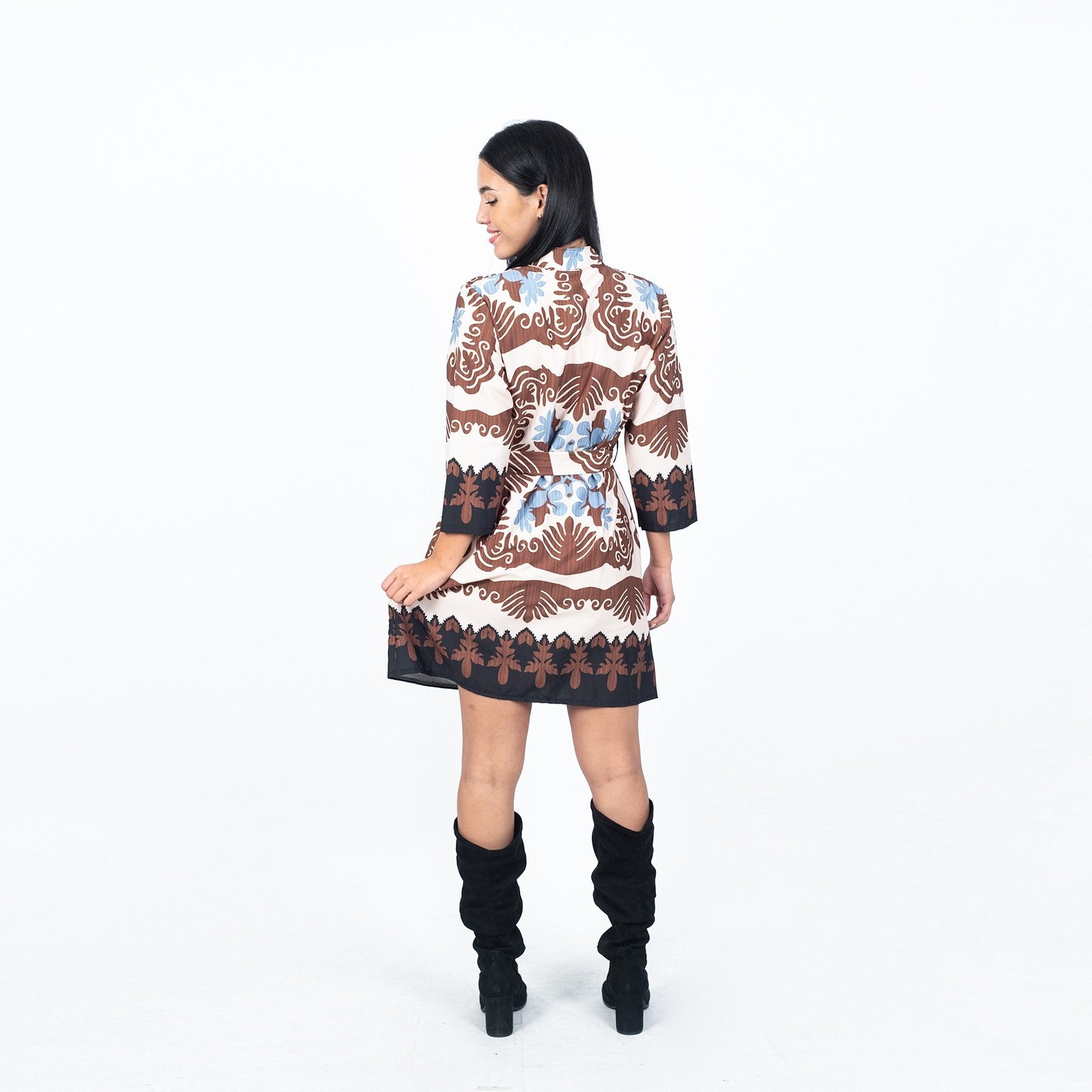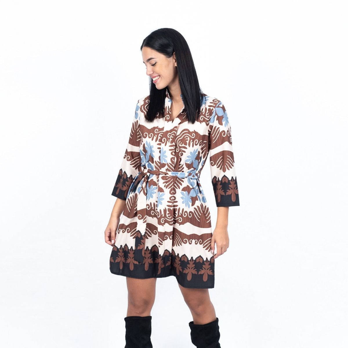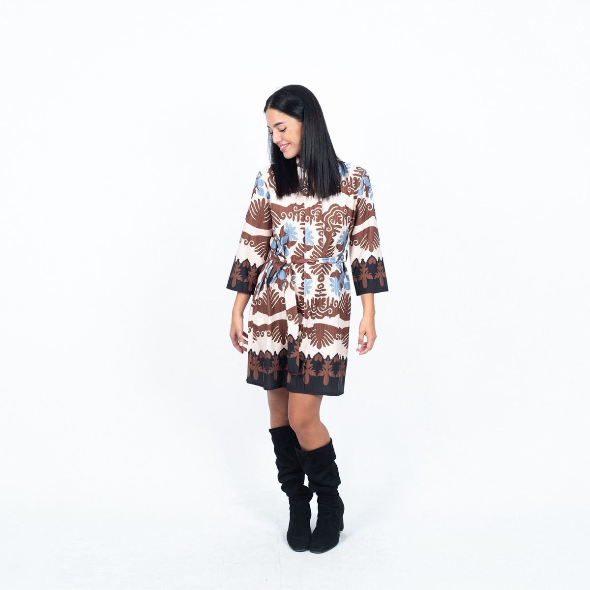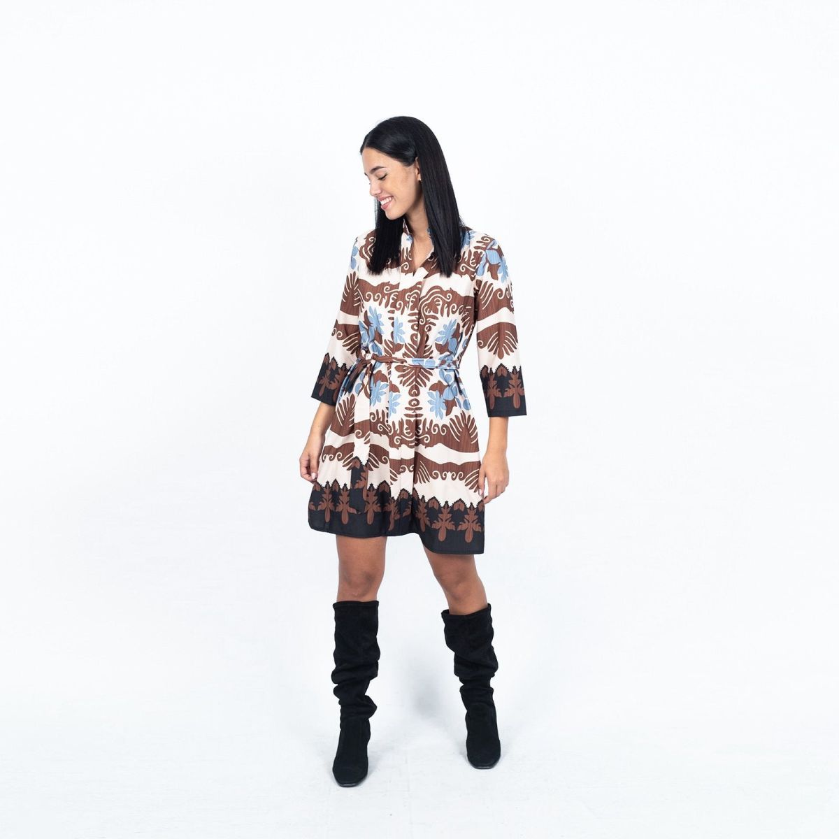 Ζακάρ, mini φόρεμα, με ζώνη στη μέση και μανίκι 3/4