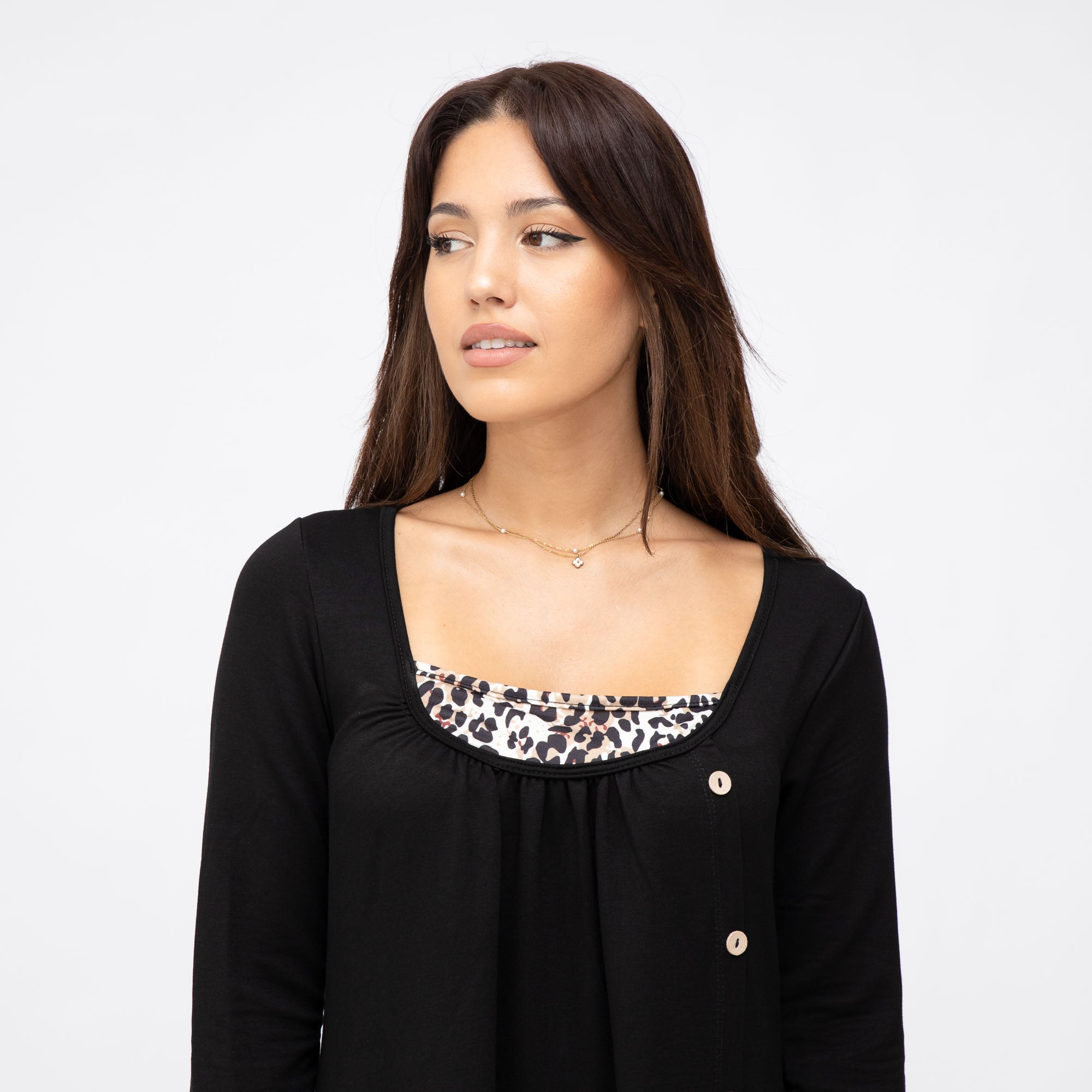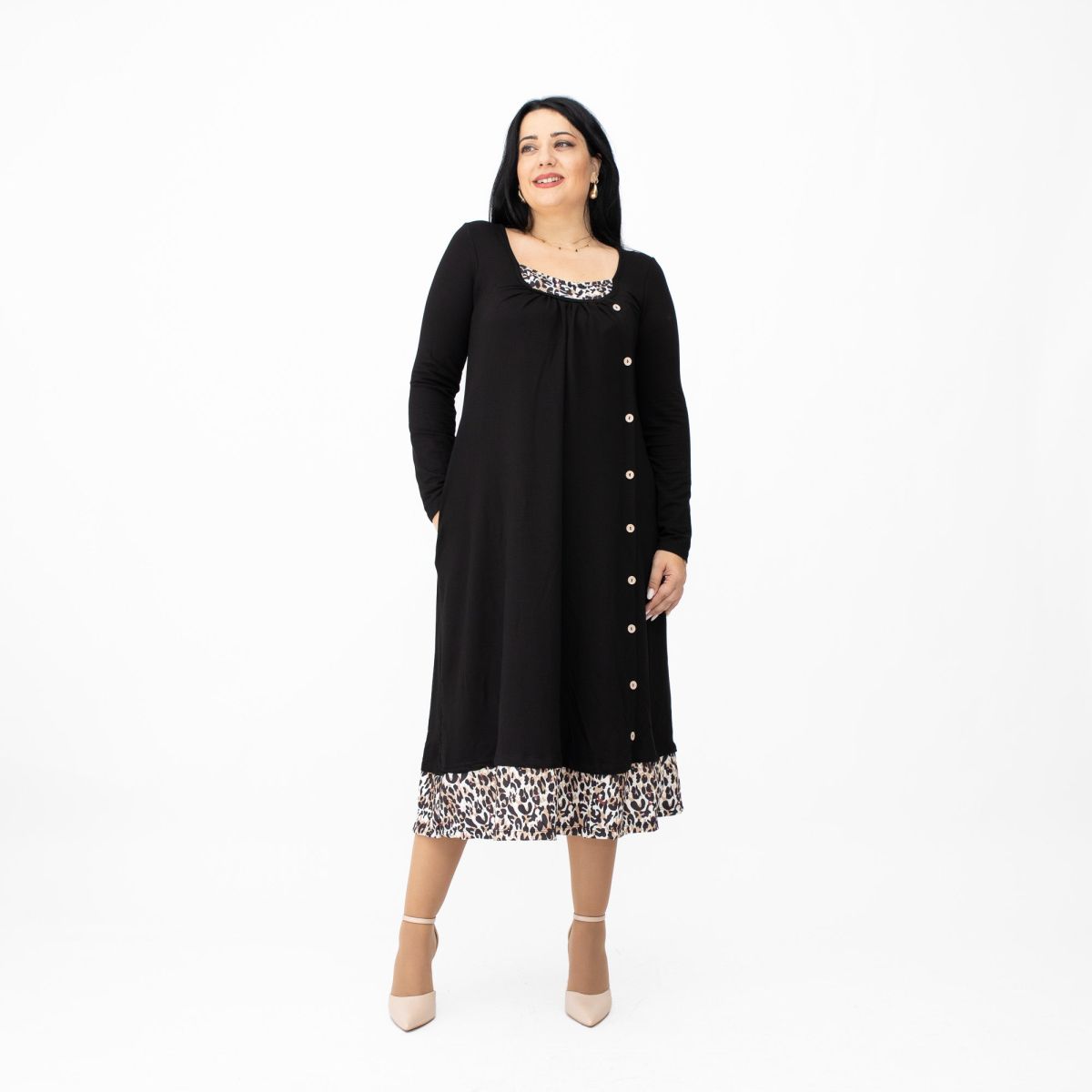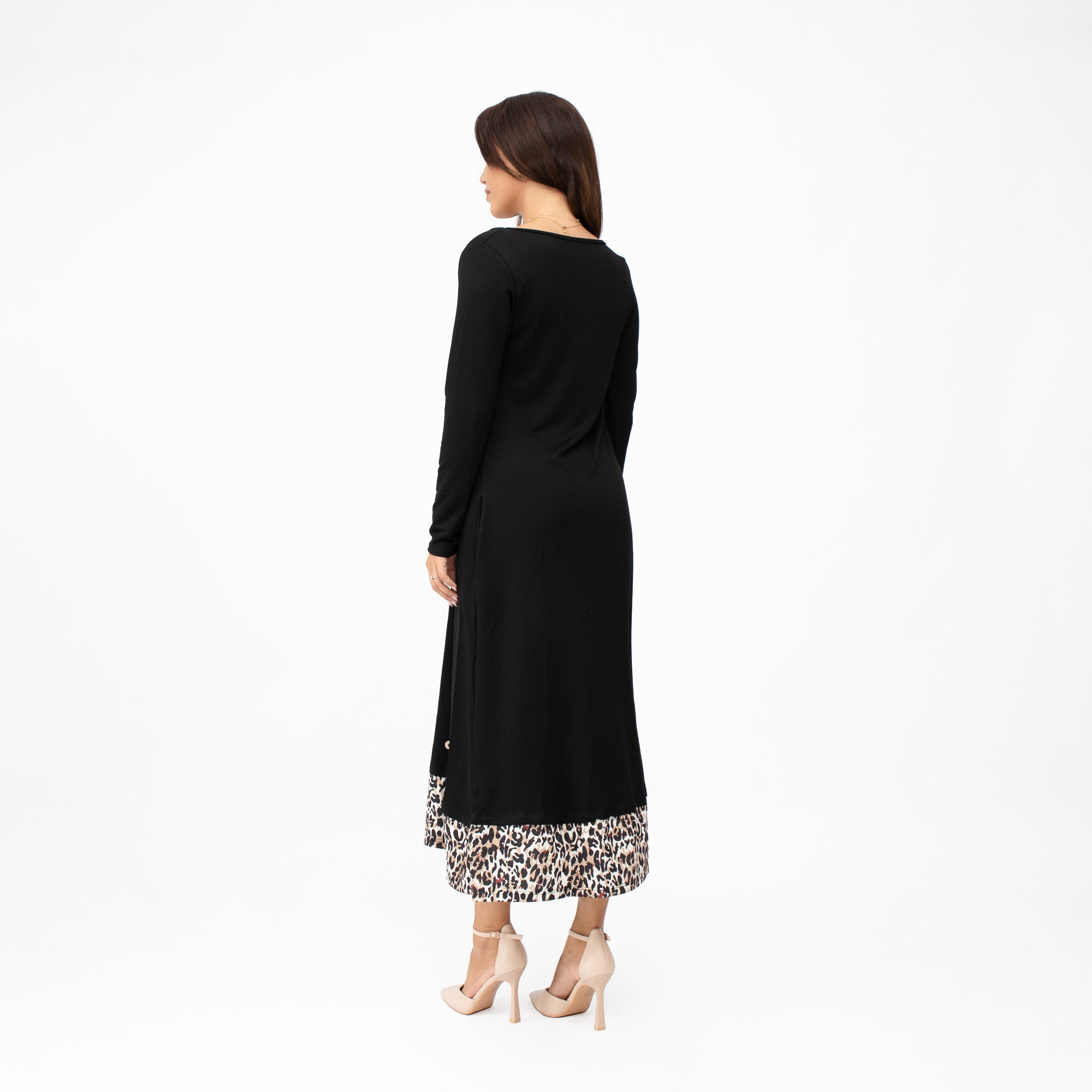 Το Μακρυμάνικο Maxi Φόρεμα με Στρογγυλή Λαιμόκοψη Μαύρο της νέας συλλογής Fashioncore είναι το κομμάτι που θα σου λύσει τα χέρια. Με το μαλακό, ελαστικό του ύφασμα, τη χαλαρή γραμμή και τις λεπτομέρειες animal print στο στήθος και στο τελείωμα, θα γίνει το νέο σου αγαπημένο outfit. Φόρεσέ το με sneakers για πιο casual look ή με ankle boots και ζώνη για extra statement εμφάνιση. Ένα φόρεμα που θα σε κάνει να νιώθεις κομψή, ανεπιτήδευτη και έτοιμη για κάθε περίσταση. Γιατί το στυλ σου δεν χρειάζεται προσπάθεια για να ξεχωρίζει!