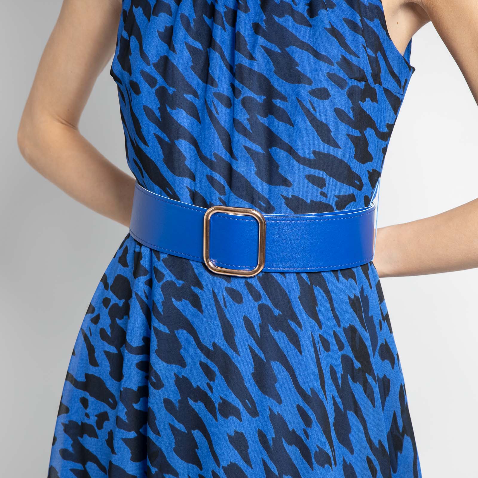 Midi Αμάνικο Φόρεμα Με Ζώνη Μπλέ Ρουά
