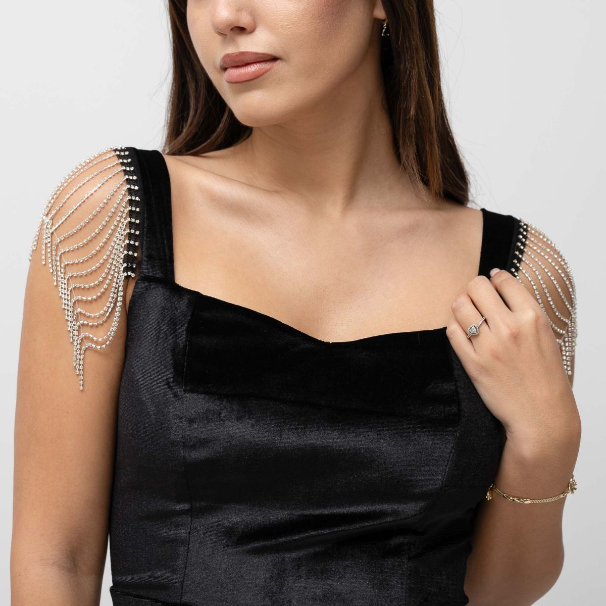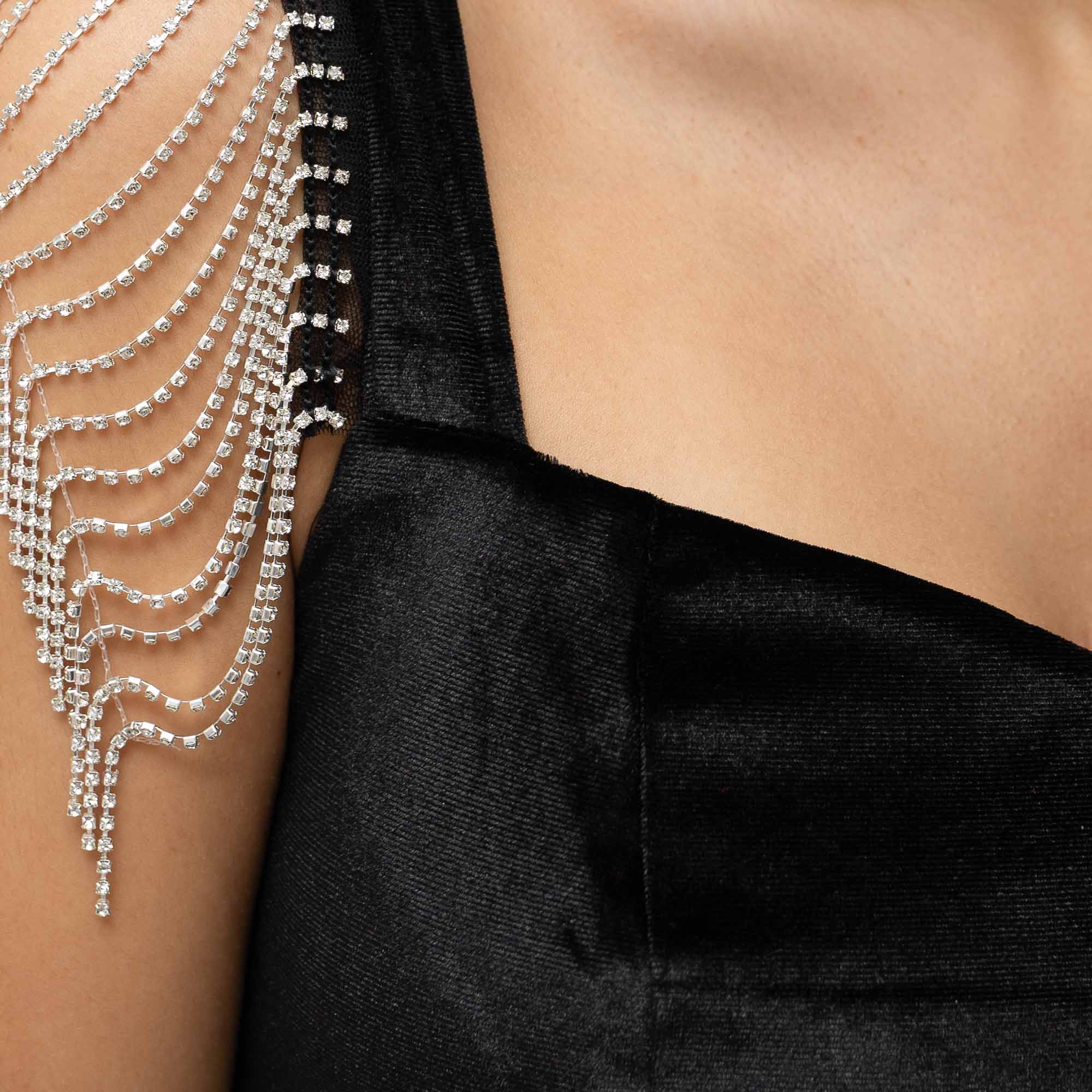 Με λαμπερά κρόσσια-κρύσταλλα σε ώμους & τελείωμα που κινούνται θεαματικά.