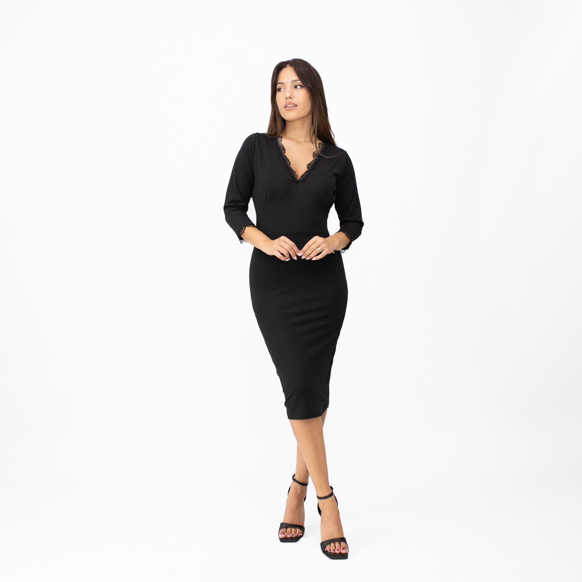 Οι γυναίκες συχνά ψάχνουν αυτό το ένα φόρεμα που θα συνδυάζει θηλυκότητα, άνεση και στιλ, χωρίς συμβιβασμούς. Αναζητάς ένα φόρεμα που να μπορεί να φορεθεί σε βραδινές εξόδους αλλά και σε πιο επίσημες περιστάσεις; Το Midi Φόρεμα με Δαντέλα Μαύρο του Fashioncore είναι ακριβώς αυτό: έχει χαρακτήρα, αναδεικνύει τη σιλουέτα, και δεν χρειάζεται φερμουάρ για να το φοράς — Ντύσε το σώμα σου με χάρη και άνεση.