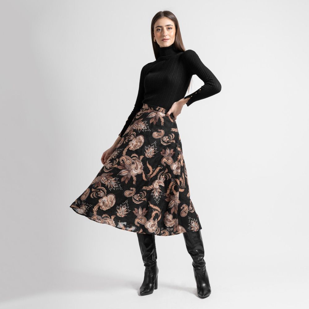 Φούστα Μακριά Εμπριμέ Μαύρο