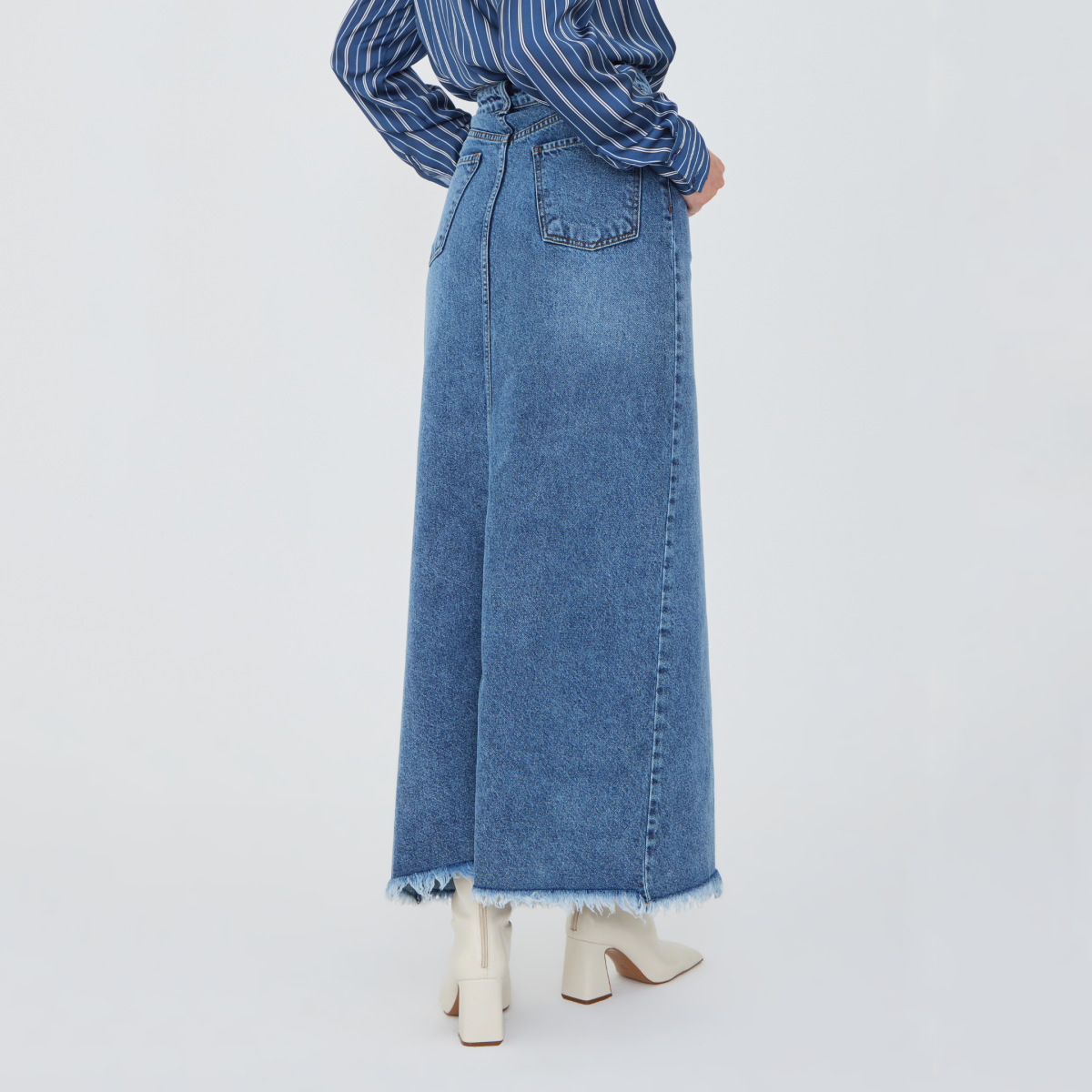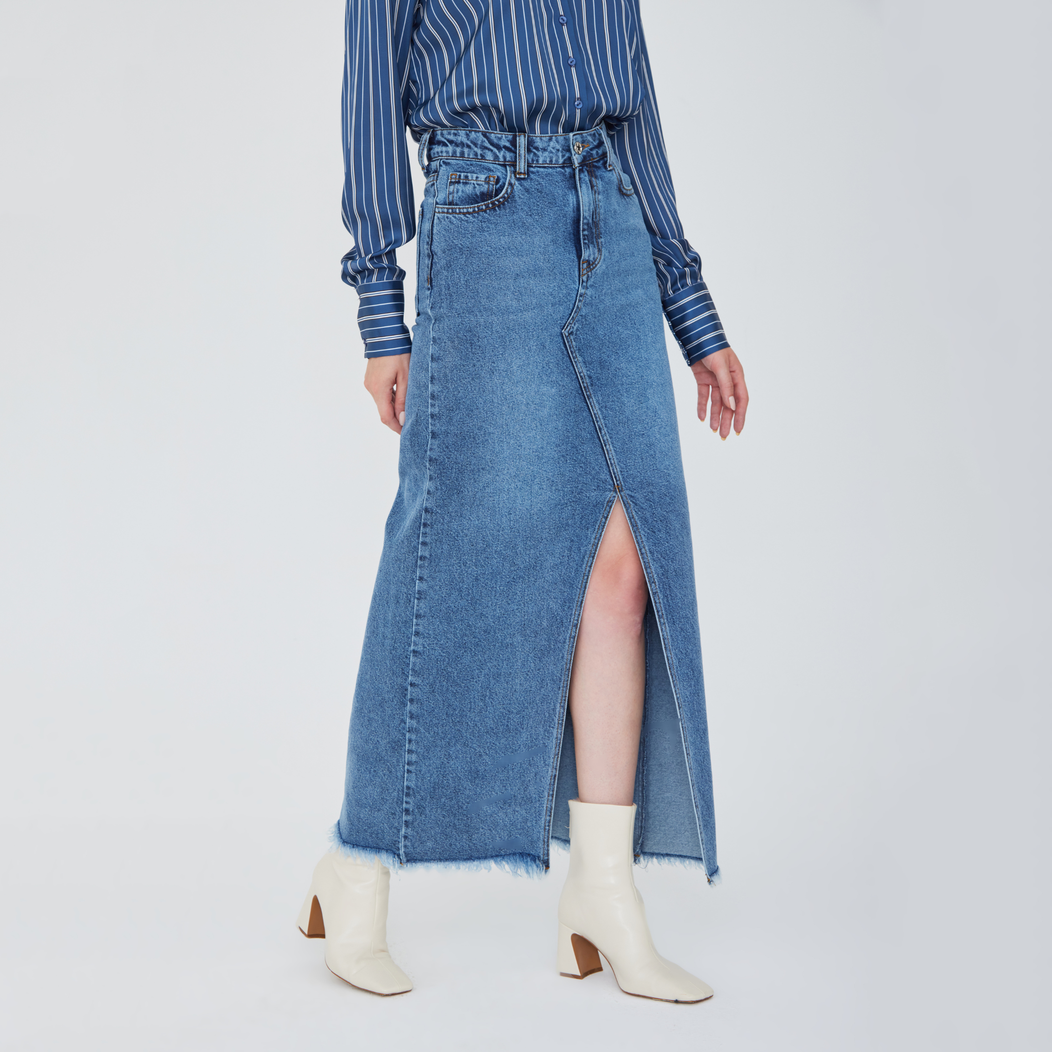 Jean Μακριά Φούστα Denim με σκίσιμο