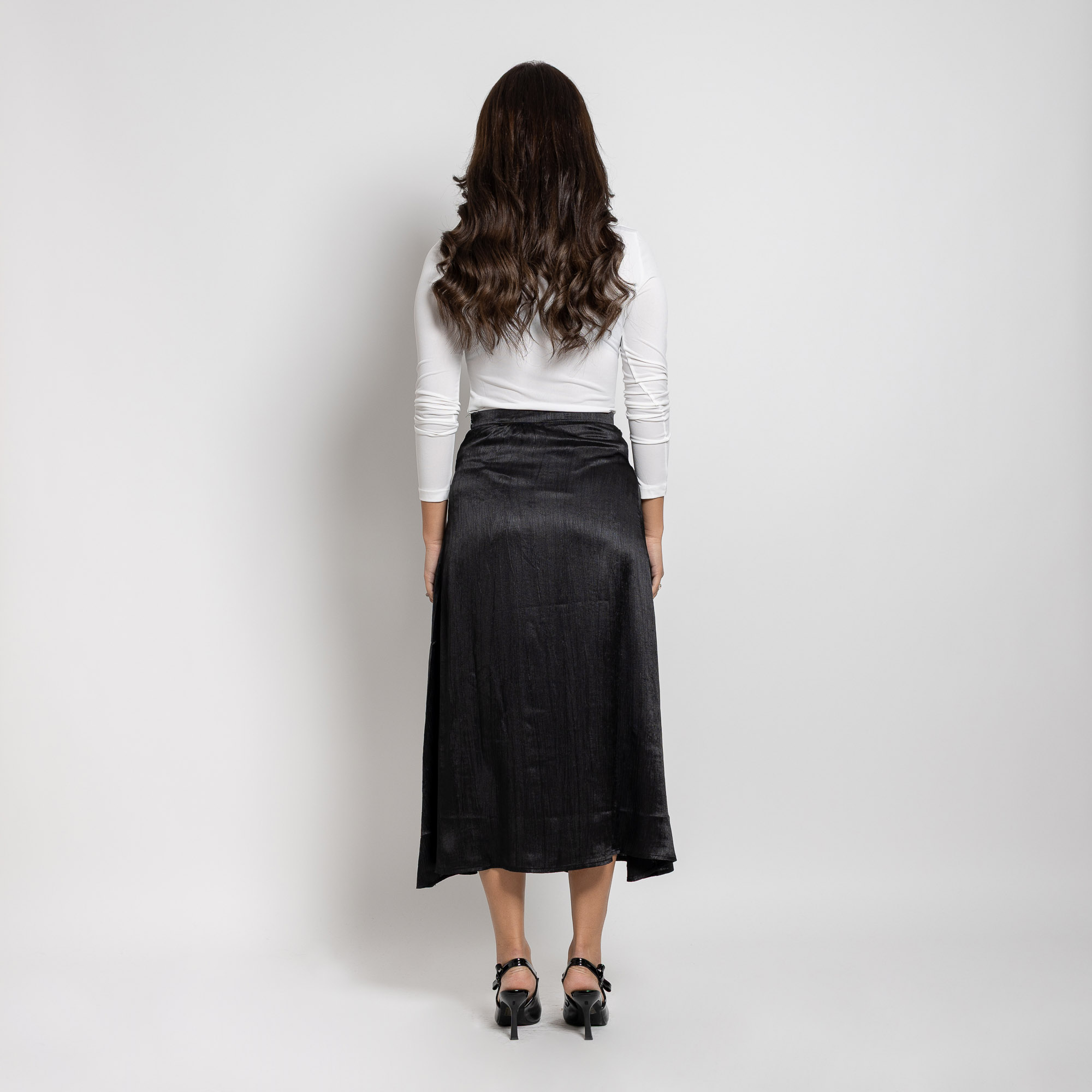 Συγκέντρωσε όλα τα βλέμματα πάνω σου με Midi Σατινέ Φούστα Μαύρη εμφάνιση που σε κάνει να ξεχωρίζεις κάθε στιγμή
