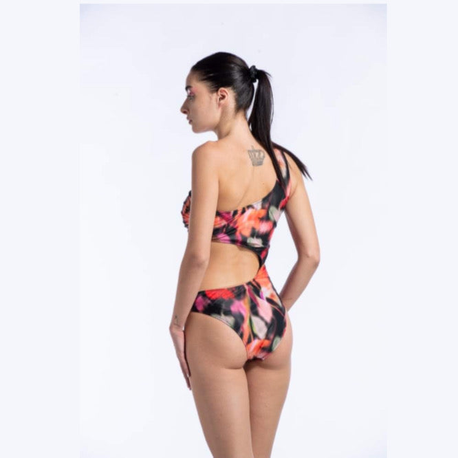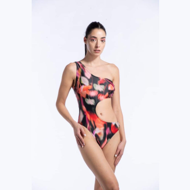 Ολόσωμο μαγιό, με έναν ώμο και κρίκο στο κάτω μέρος.