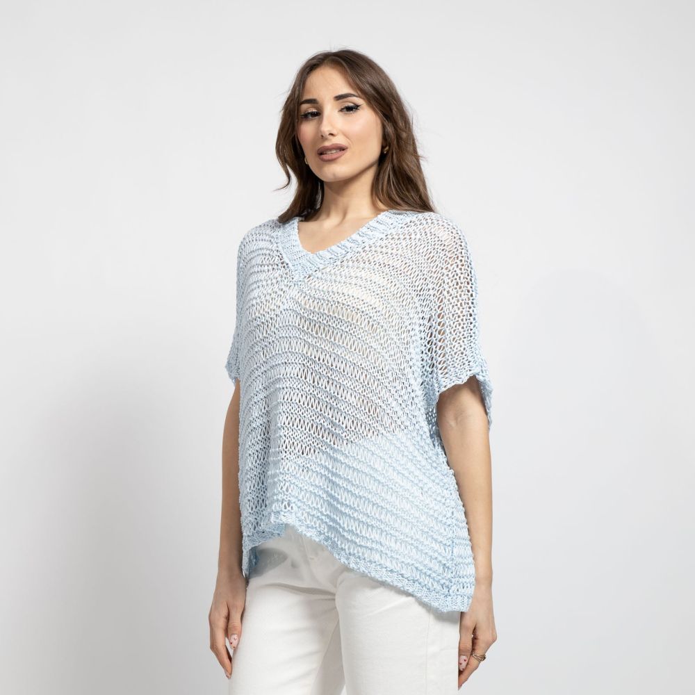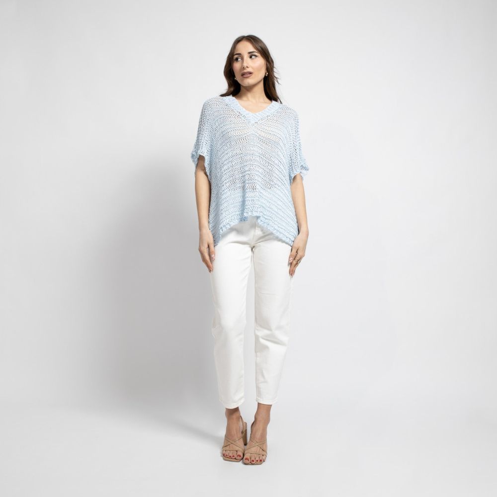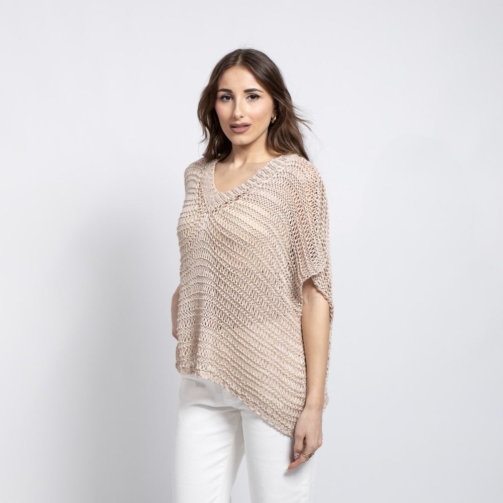 Πλεκτό Μπλουζάκι Με Λαιμόκοψη Μπεζ