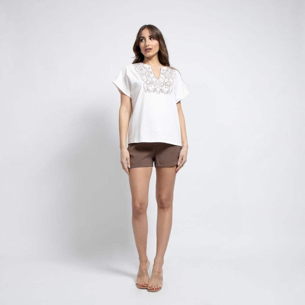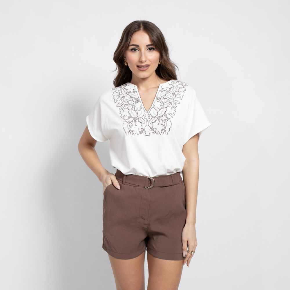 Μπλούζα Ethnic Με Κέντημα Λευκό