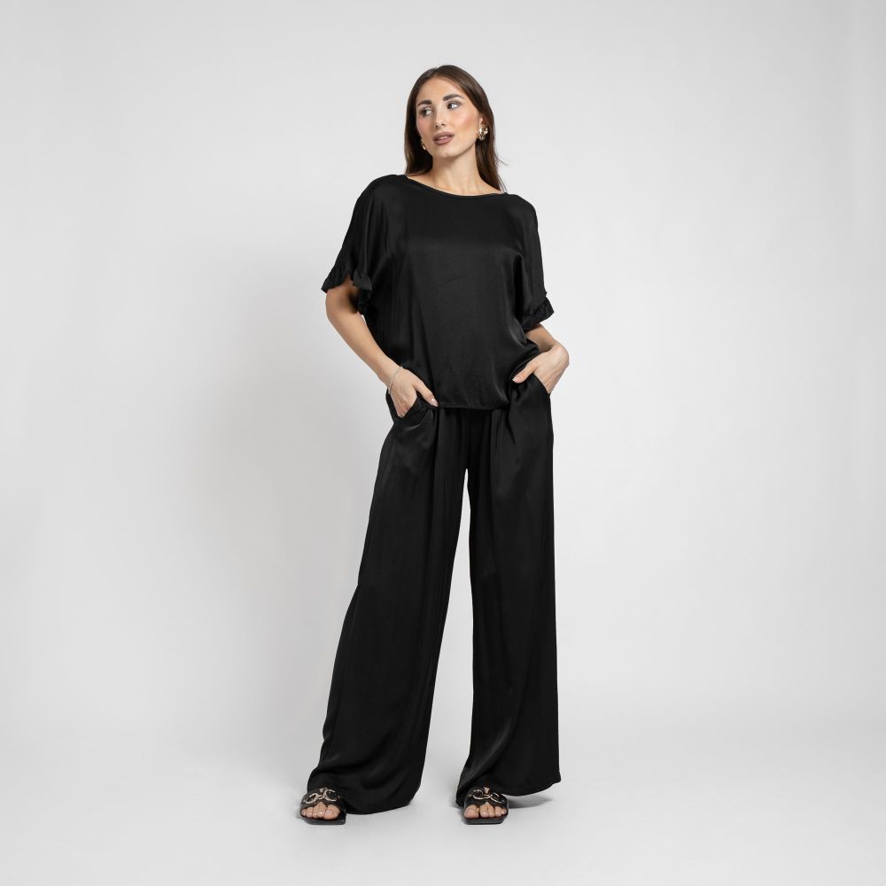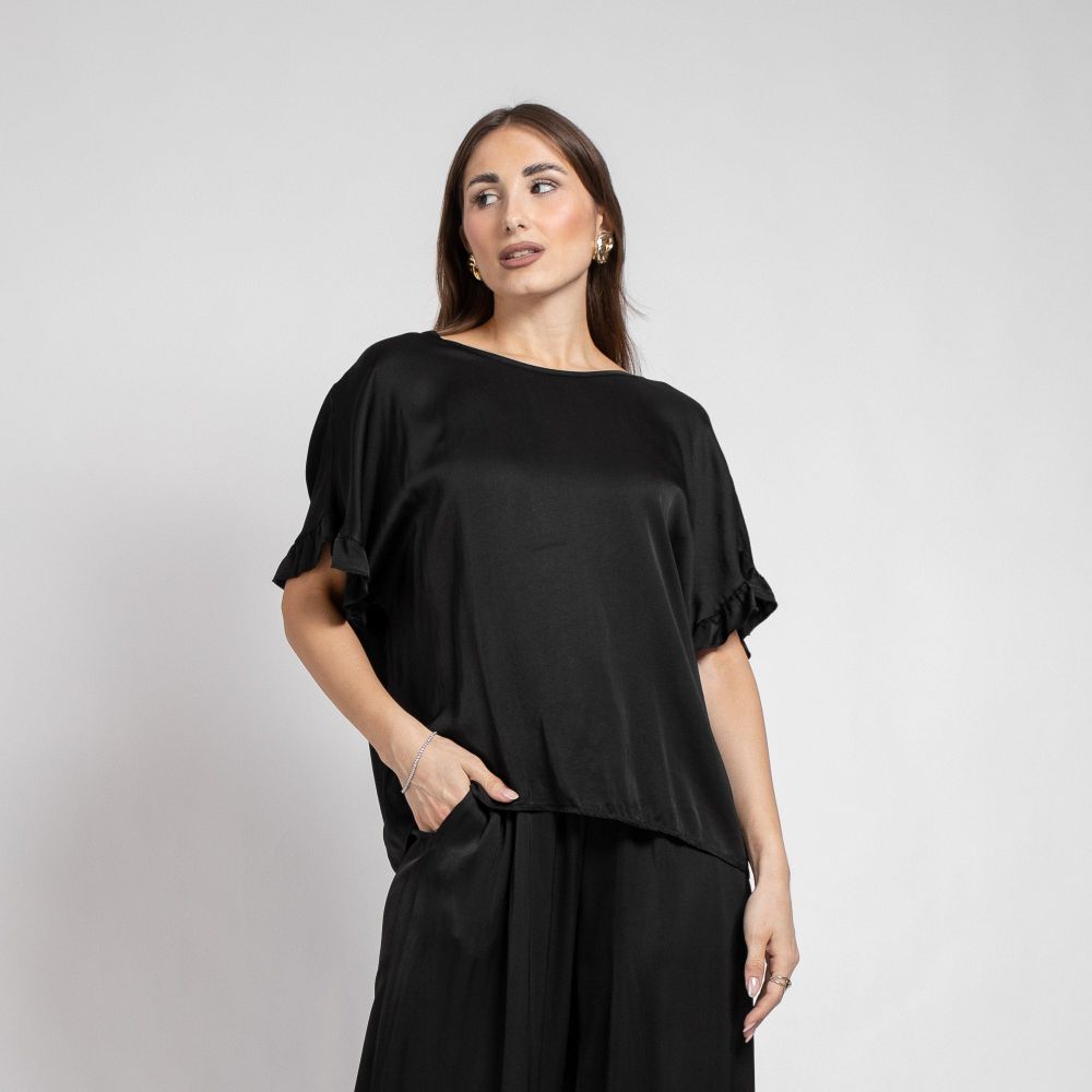 Μπλούζα Σατέν με Βολάν Μαύρη