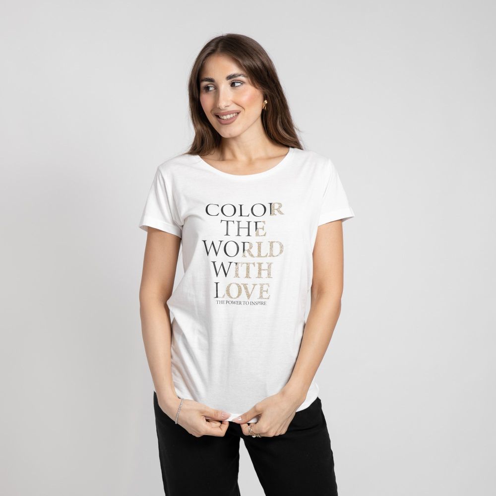 Μπλουζάκι Με Στάμπα Και Λαιμόκοψη Λευκό
