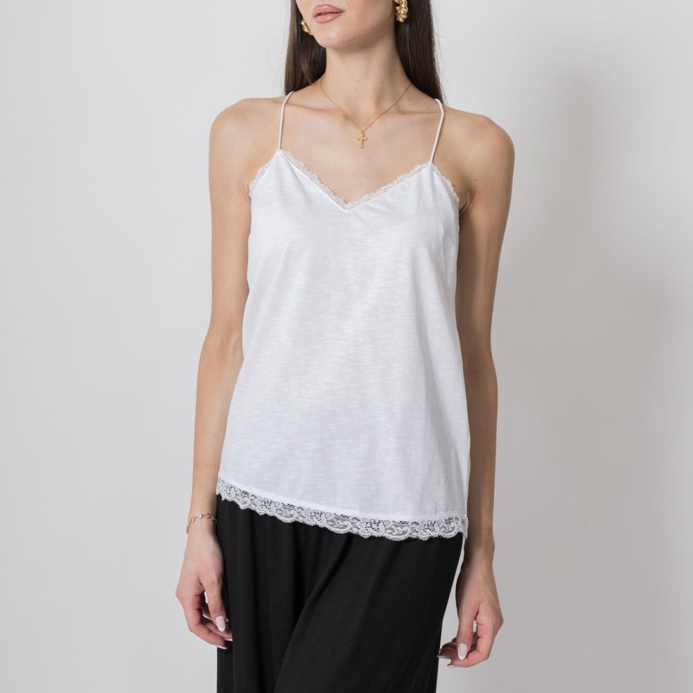 Μπλούζα Λεπτό Ραντάκι Με Δαντέλα Λευκό