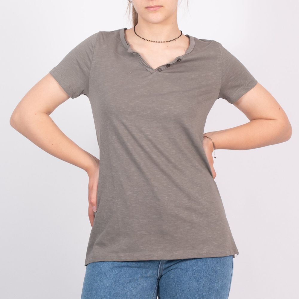 Μπλουζάκι Κοντομάνικο "V" Με Κουμπιά Ανοιχτό Γκρι