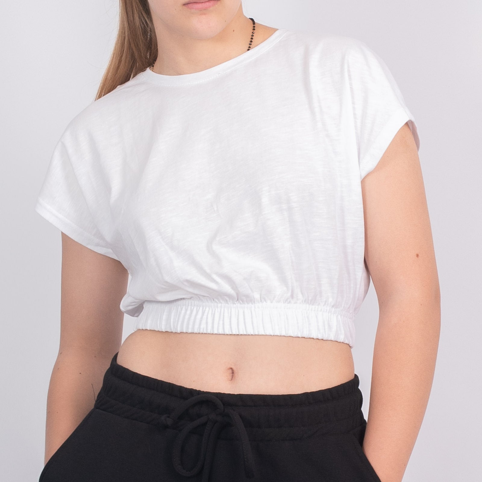 Συγκέντρωσε όλα τα βλέμματα πάνω σου με Crop Top Κοντομάνικο Με Λάστιχο Λευκό εμφάνιση που σε κάνει να ξεχωρίζεις κάθε στιγμή