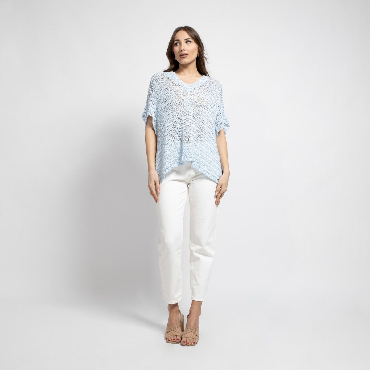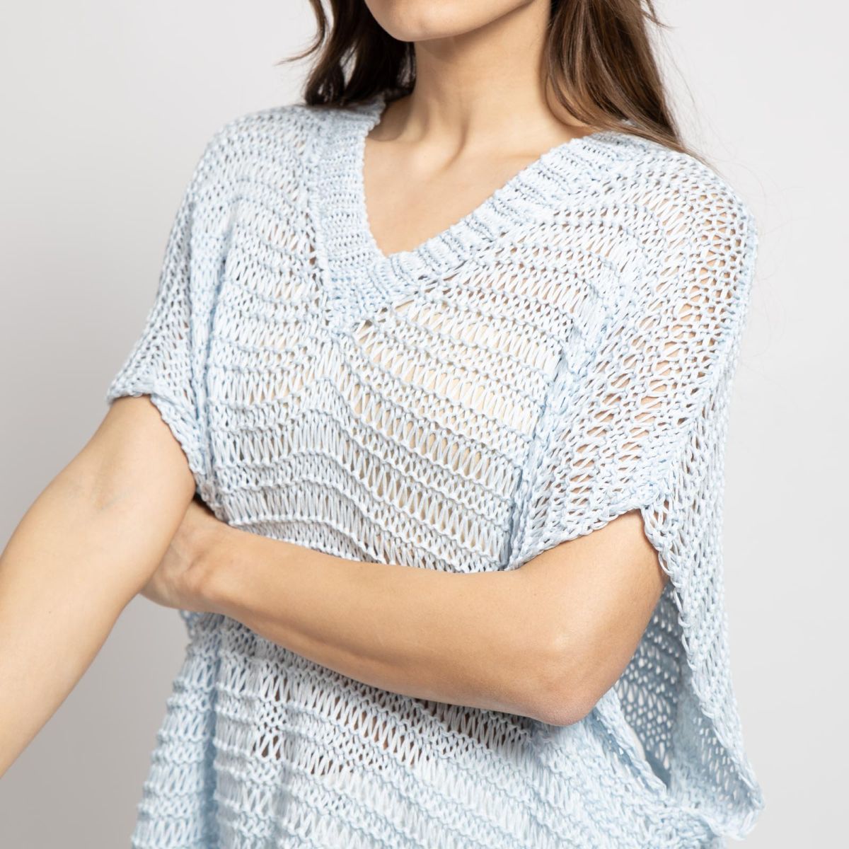 Μπλούζα Διάτρητη με " V " Σιελ