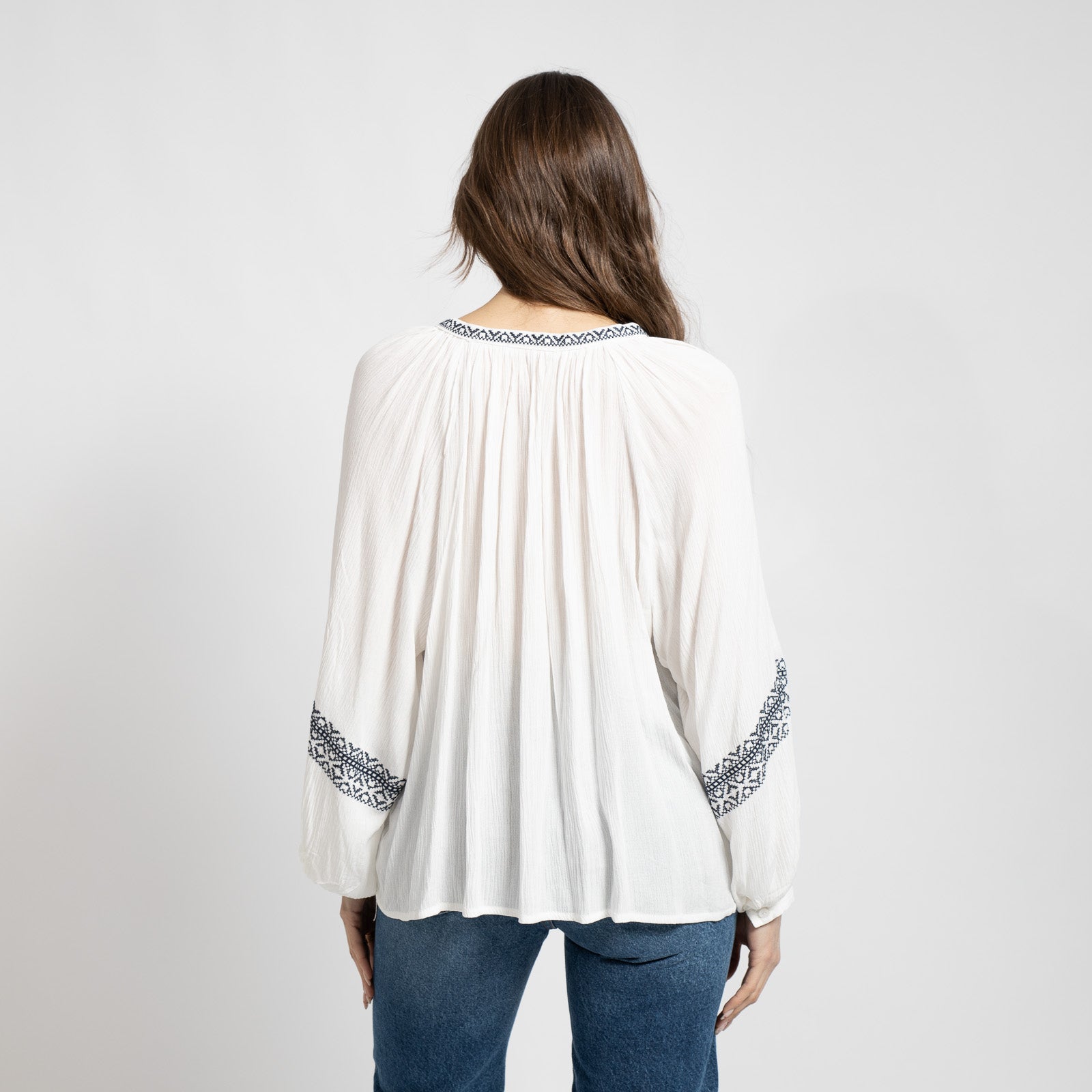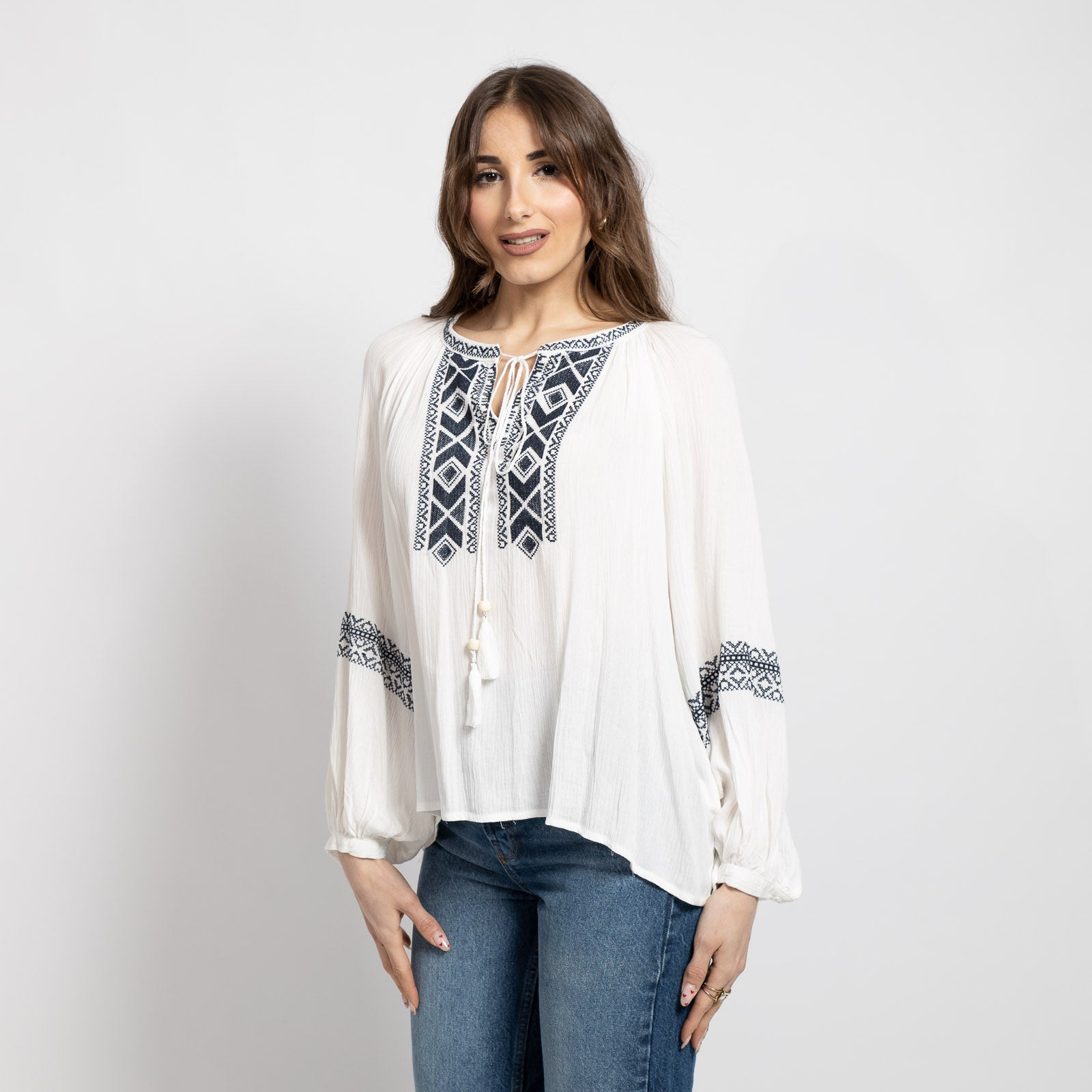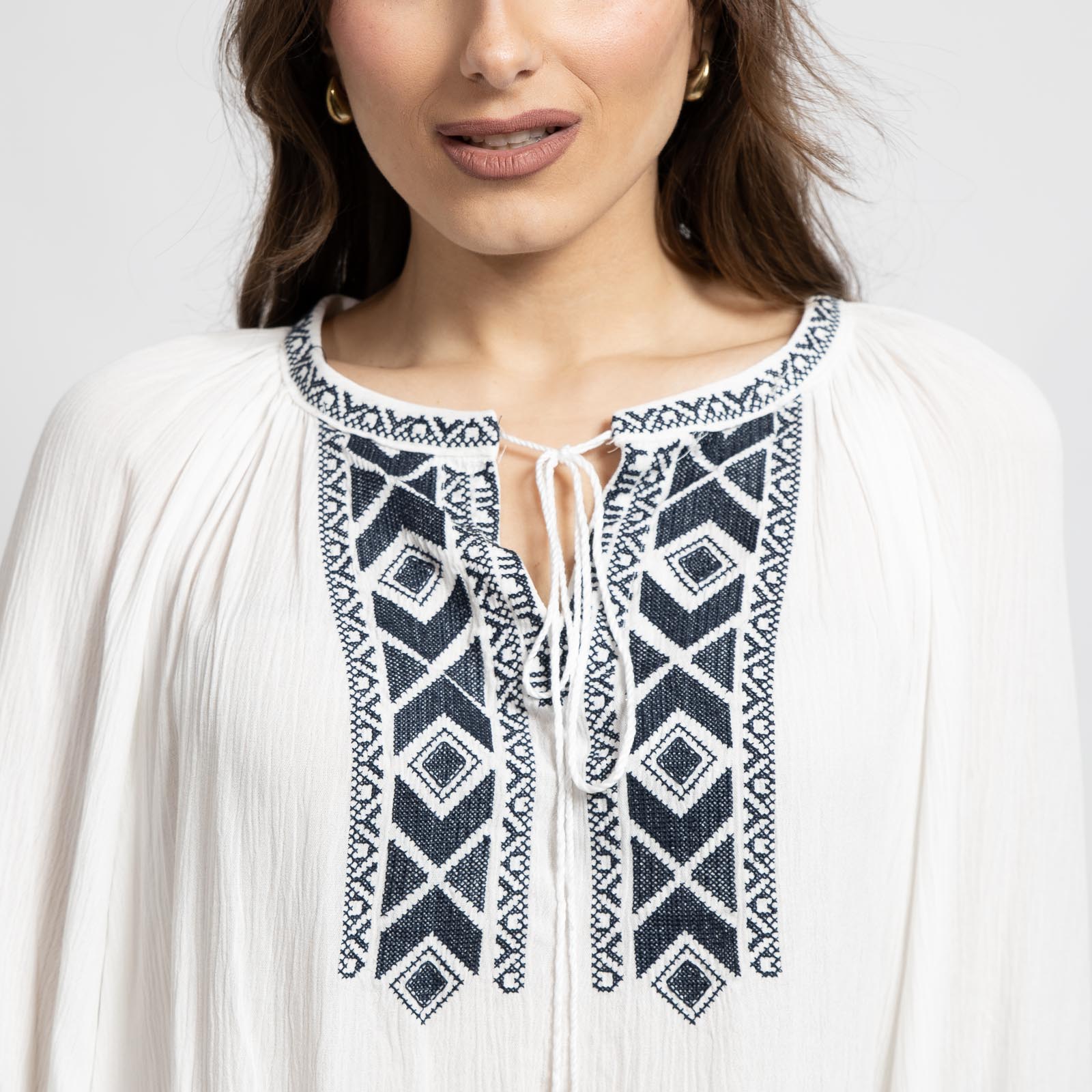 Διαθέτει μπλε κέντημα στο μπροστινό μέρος για ethnic χαρακτήρα.