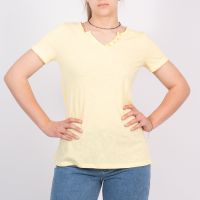Μπλουζάκι Κοντομάνικο "V" Με Κουμπιά Κίτρινο